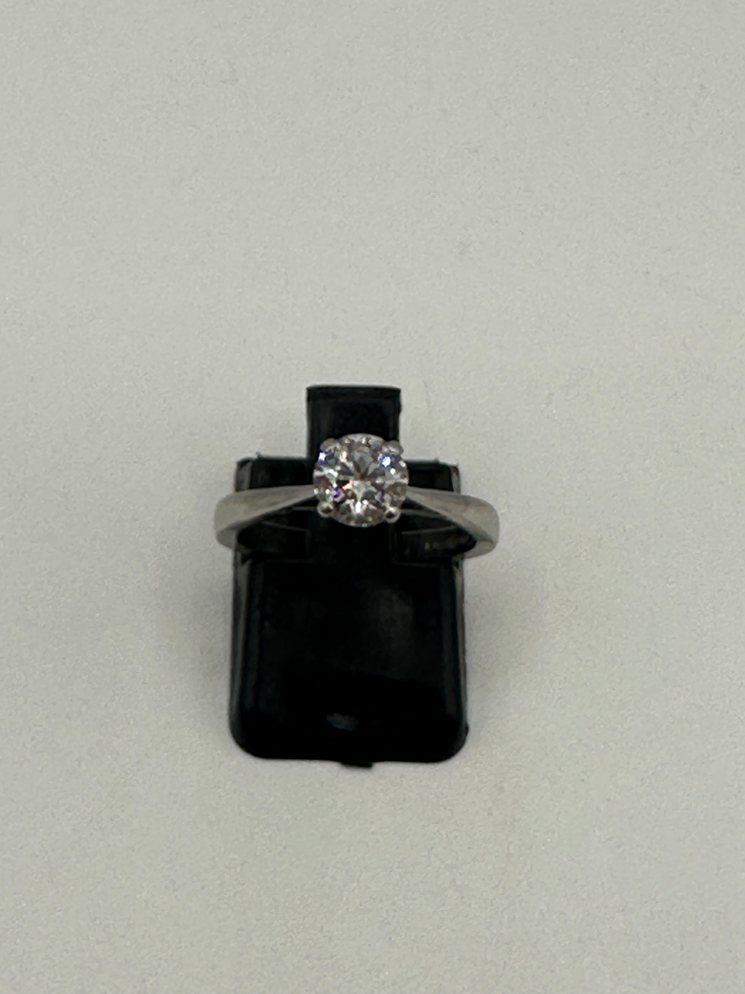 A sophisticated platinum solitaire diamond ring, masterfully crafted in lustrous platinum (950) and centred on a single brilliant-cut diamond set in a classic four-claw (prong) setting. This iconic design celebrates the purity of form — the four claws hold the diamond securely while allowing maximum light to enter the stone, enhancing its brilliance and fire. The slender, polished band tapers subtly toward the centre stone, providing timeless elegance that is both versatile and wedding-band friendly. Solitaire rings such as this typically feature round brilliant diamonds with various carat weights and independent certification available on request.