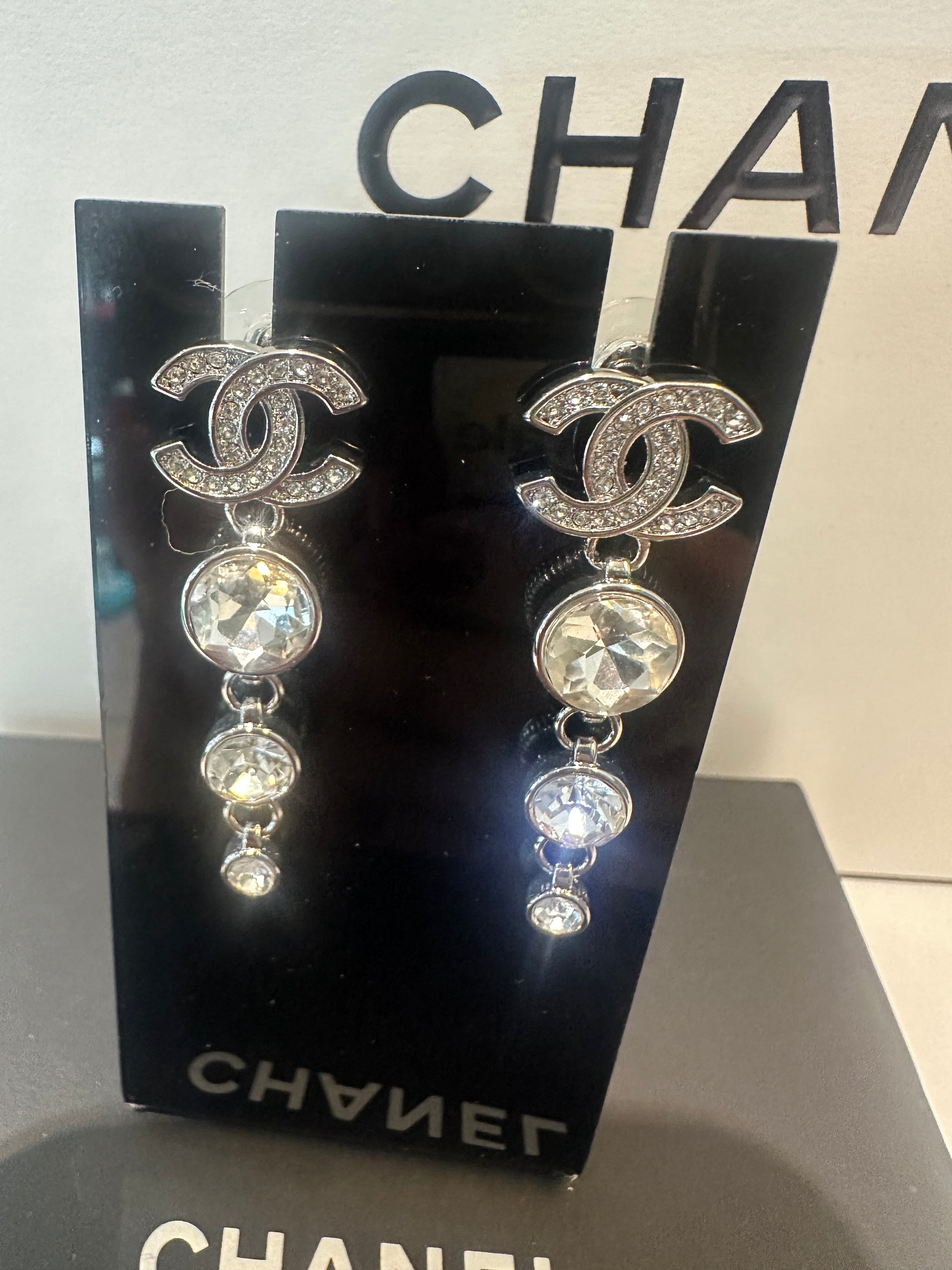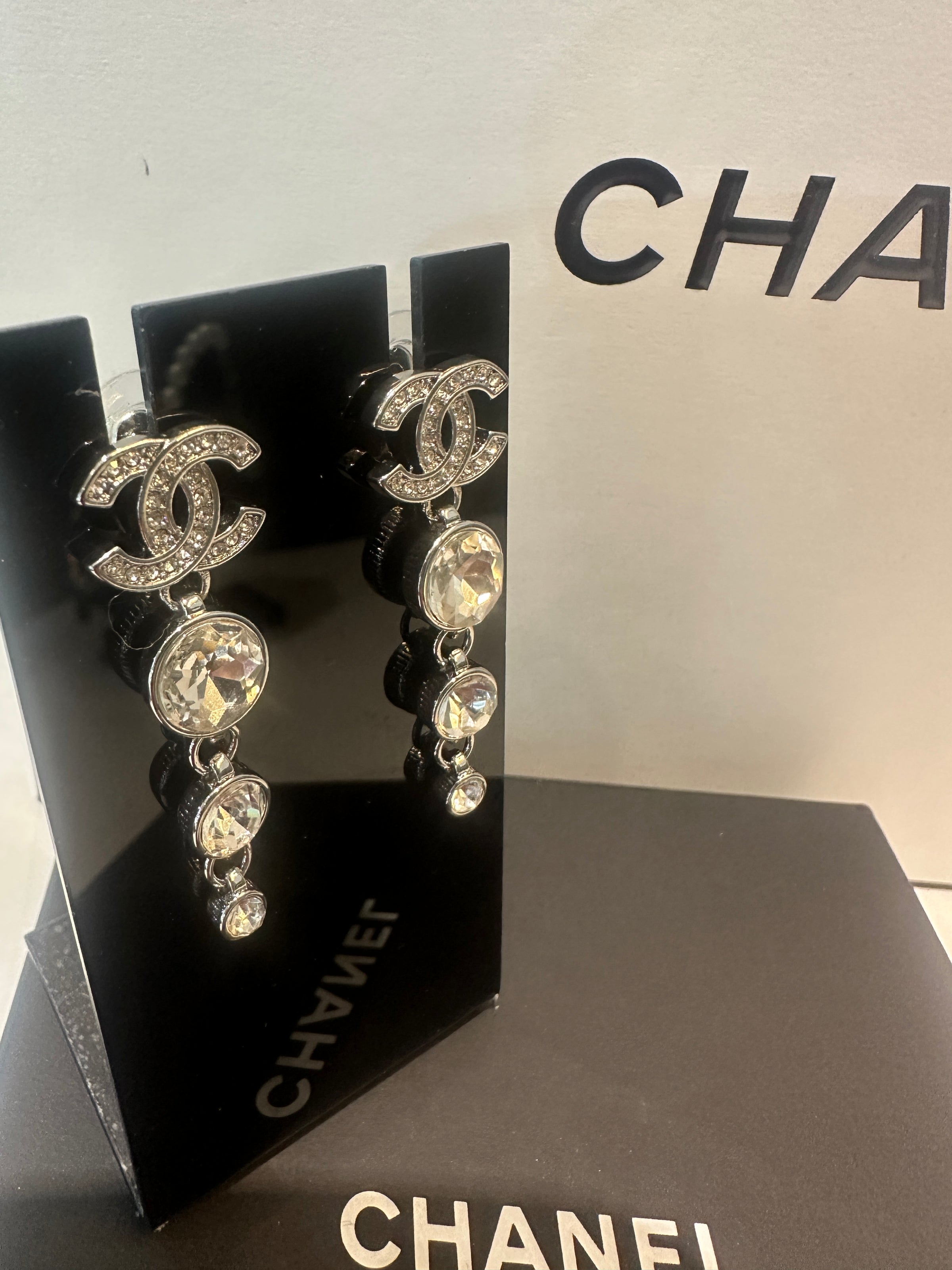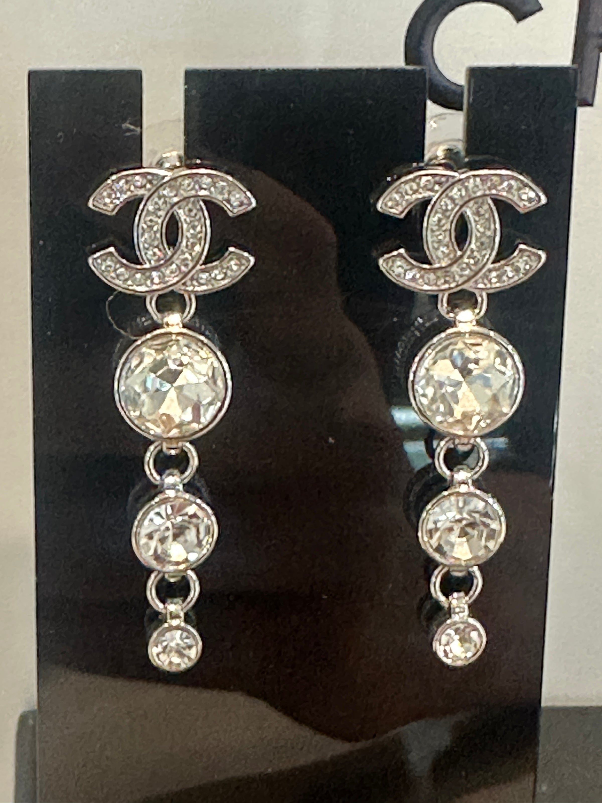 Re-Worked Chanel CZ Drops CC Logo Silver Plated