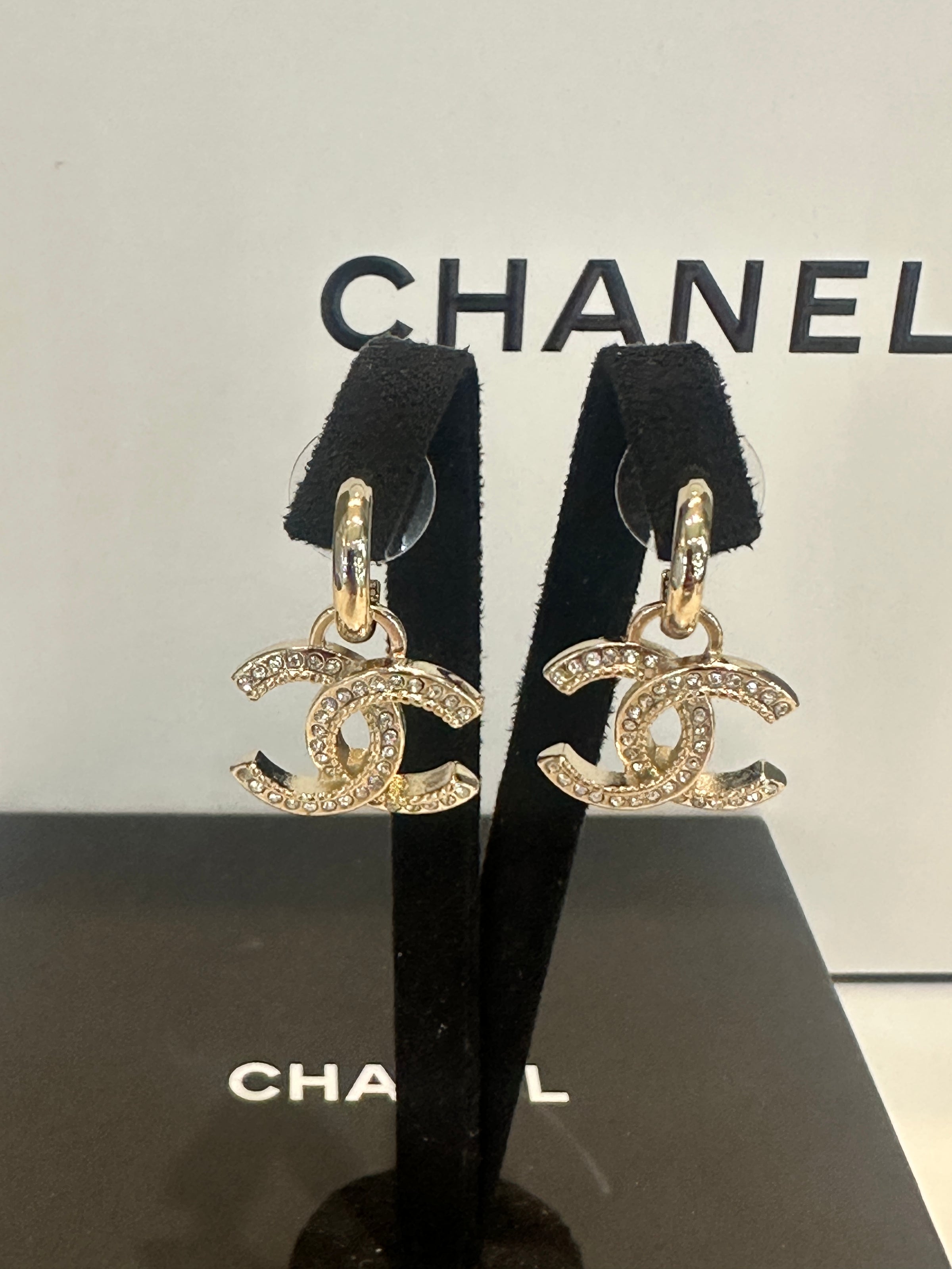These exquisite re-worked Chanel half-hoop earrings are crafted in rich gold plate and adorned with dazzling cubic zirconias for an opulent yet refined finish. Each earring features the signature CC logo, subtly integrated into the design to reflect Chanel’s unmistakable aesthetic. The half-hoop silhouette offers a modern twist on a classic style, combining comfort with statement appeal. Sparkling cubic zirconias enhance the luxurious shine, making these earrings an elegant choice for both daytime sophistication and evening glamour.