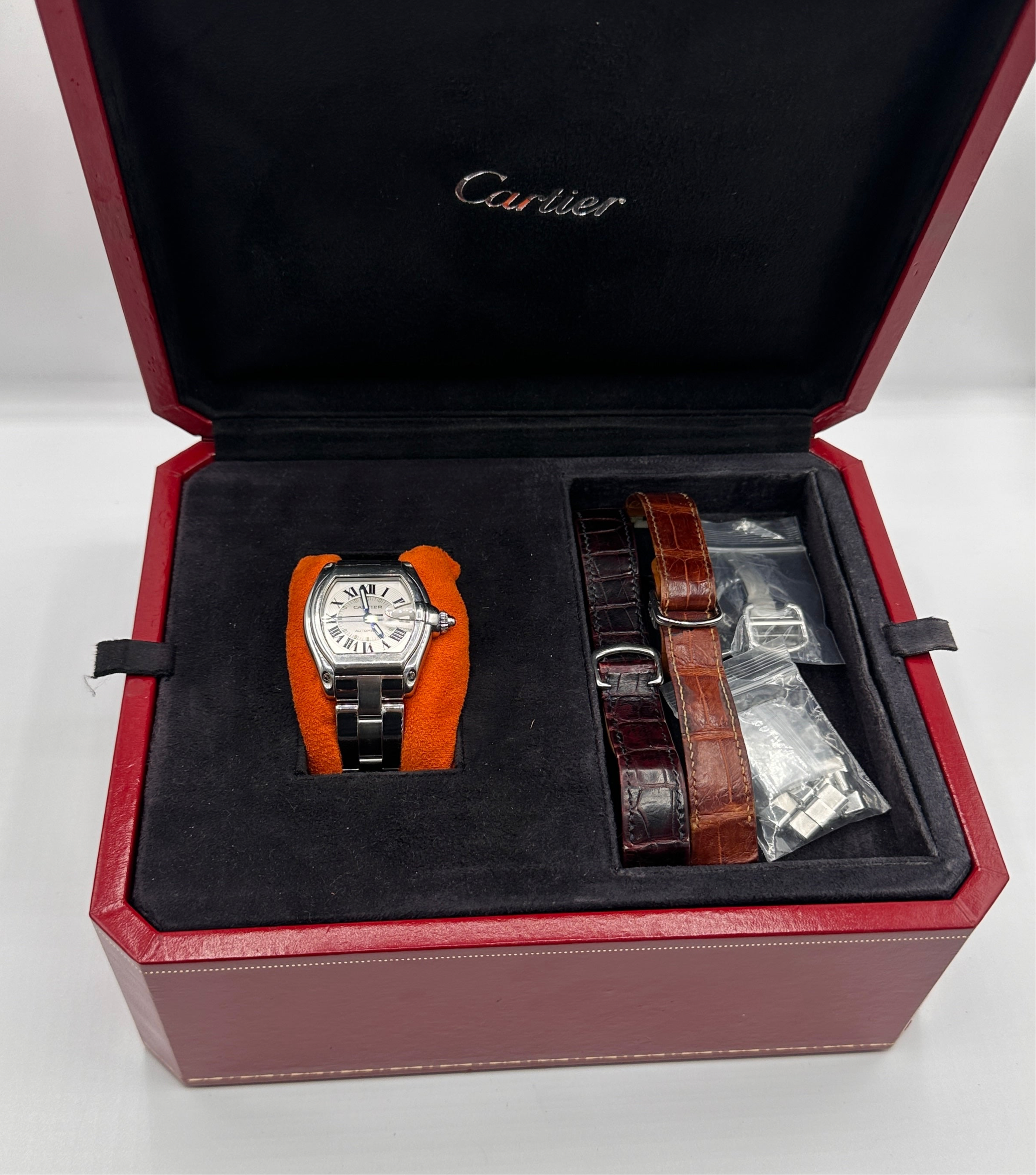 The watch series Roadster, put on the market in the year 2001, was inspired by the automotive world of the 1950s and 1960s. At that time, the first sports car with racy curved bodies came on the market, the “roadster”. The design of the Roadster watch takes on the silhouette of these vehicles.