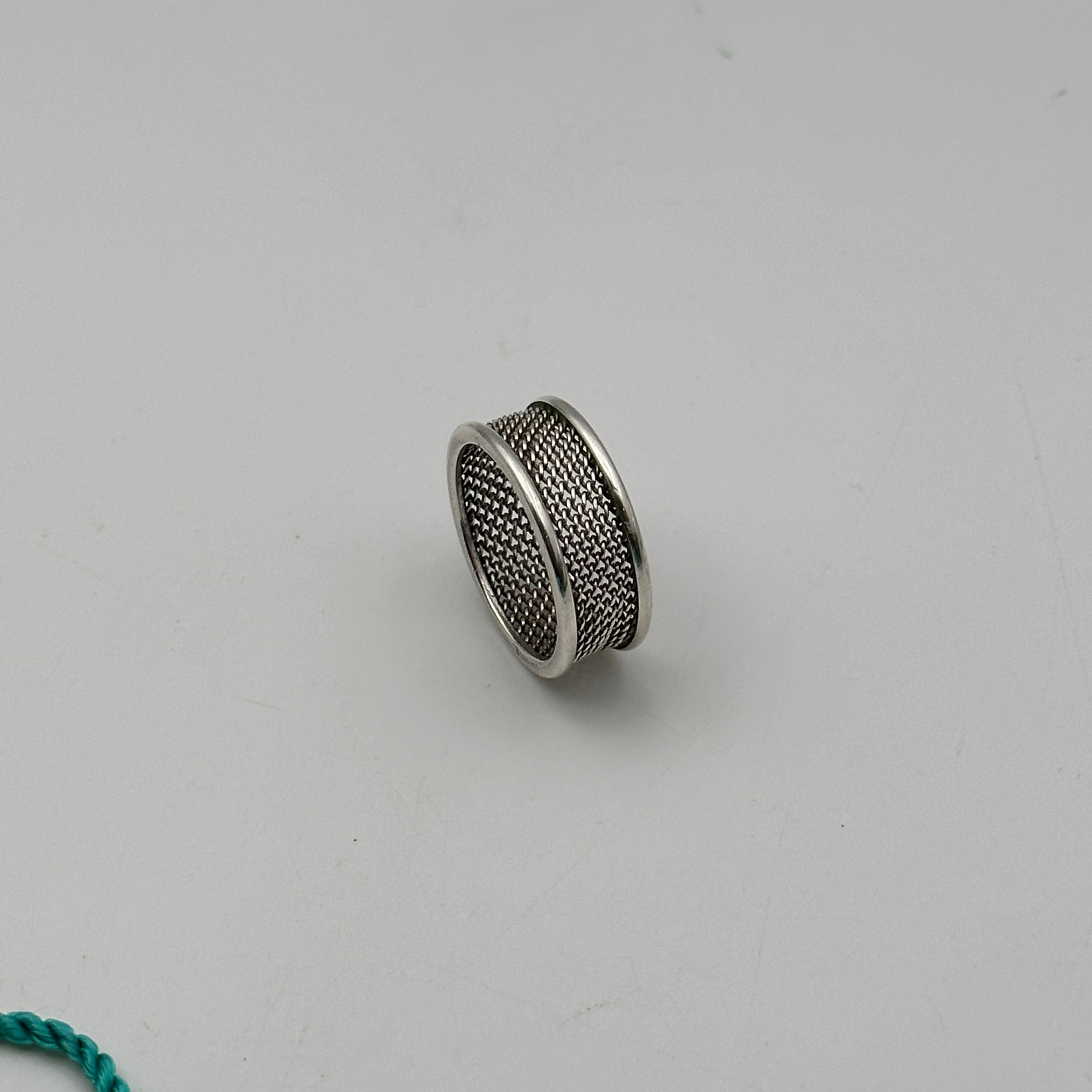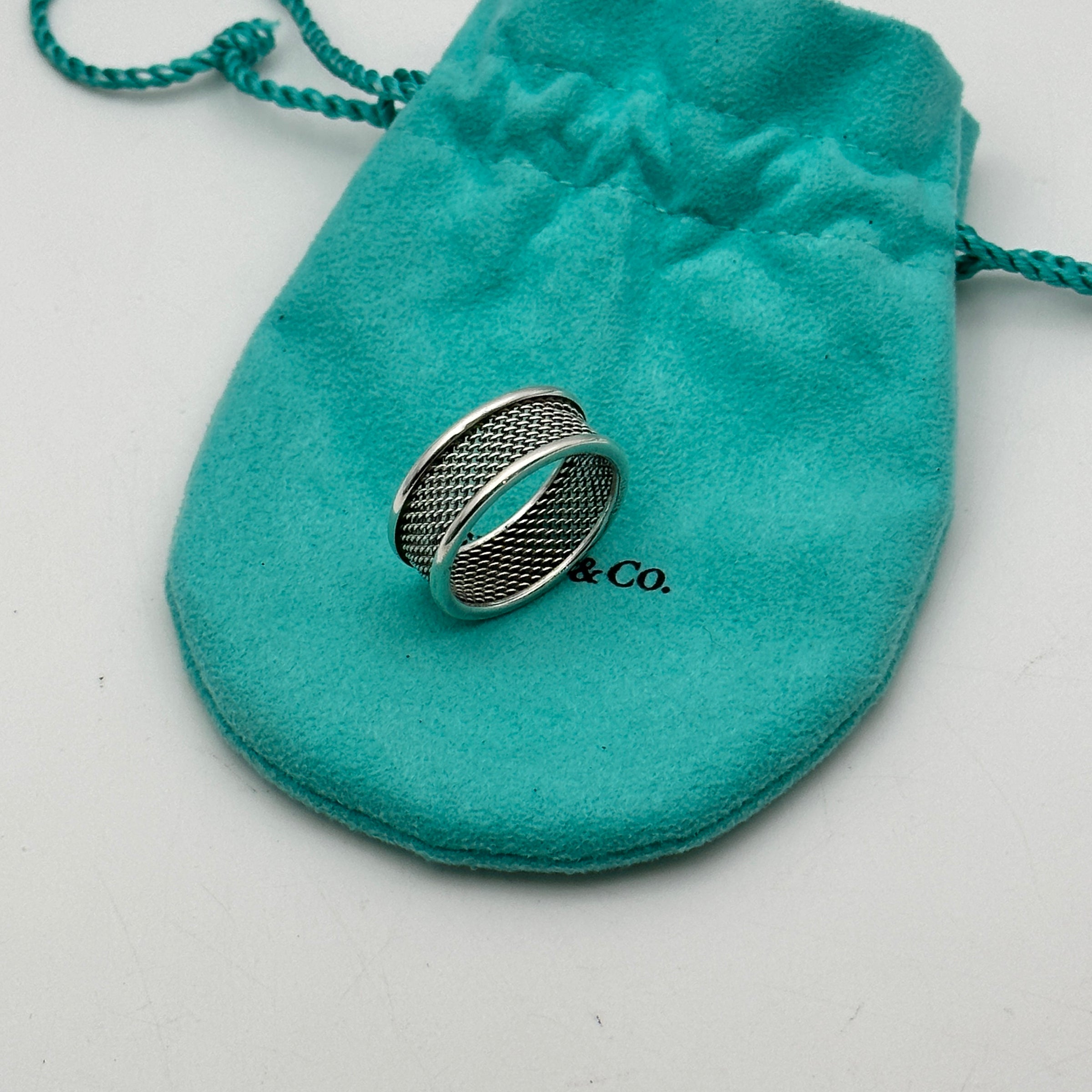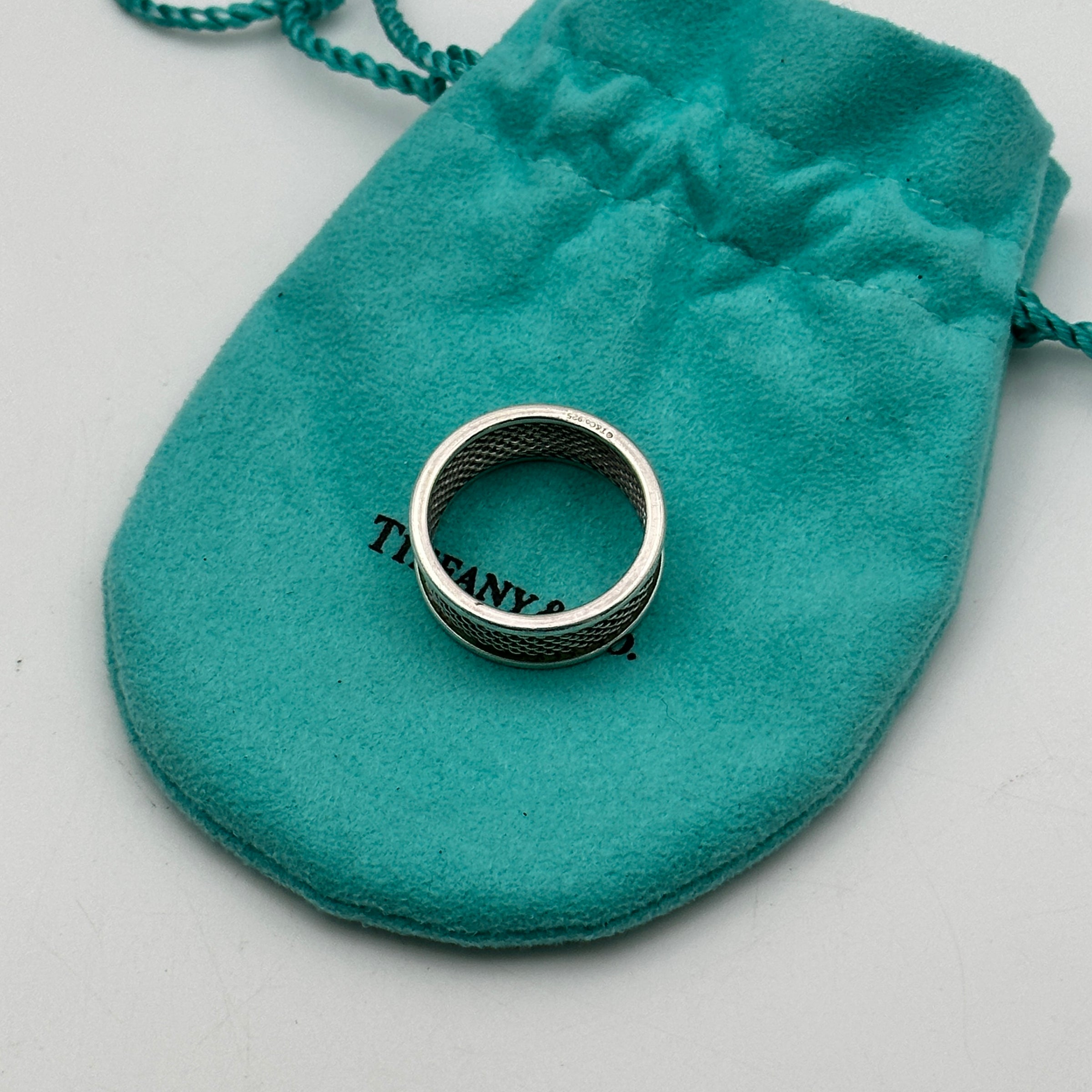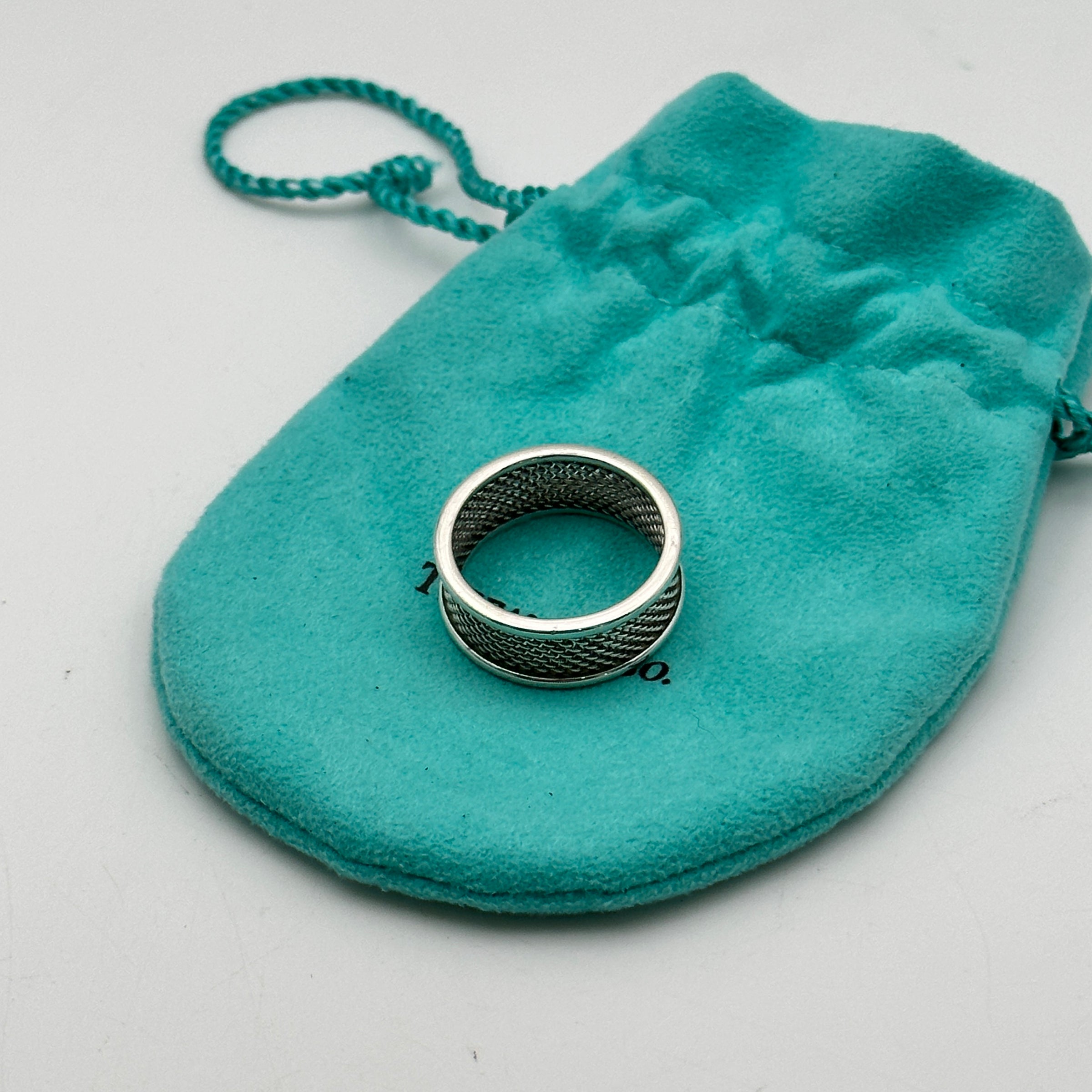 The Tiffany & Co. Somerset Wide Mesh Ring exemplifies understated luxury through its intricate design and superior craftsmanship.