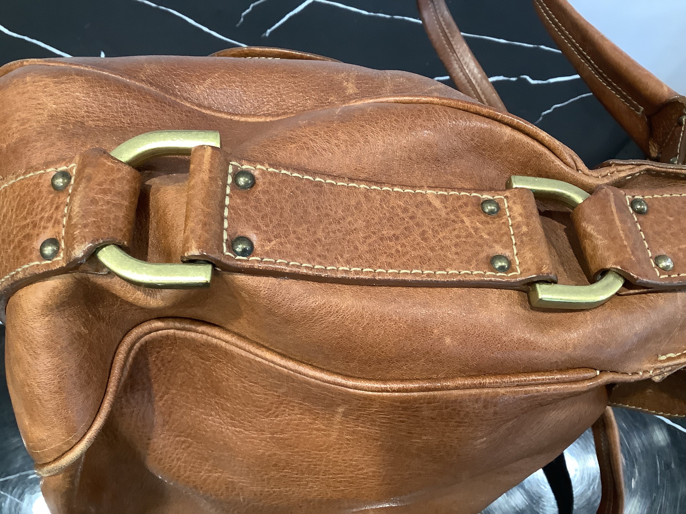 All items have been inspected for authenticity. As this is a second-hand vintage piece, expect signs of wear consistent with age—such as light surface scuffs, colour variation, softened structure or minor hardware ageing. Vintage leather items may require careful maintenance, including conditioning and attention to hardware, to preserve their performance and appearance.