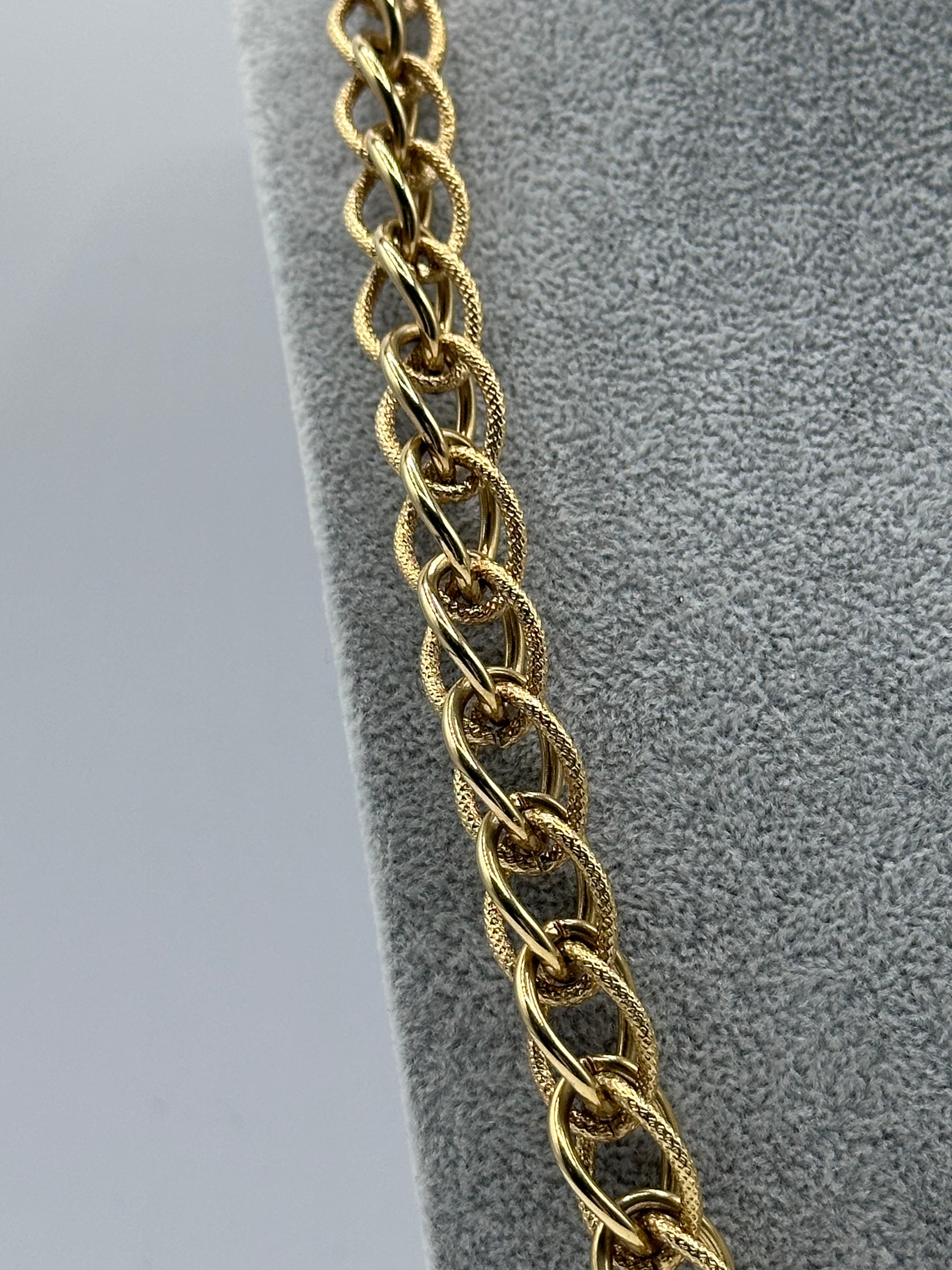 Yellow gold plated Monet double curb link chain with graduated links and a large clasp to secure the links.
