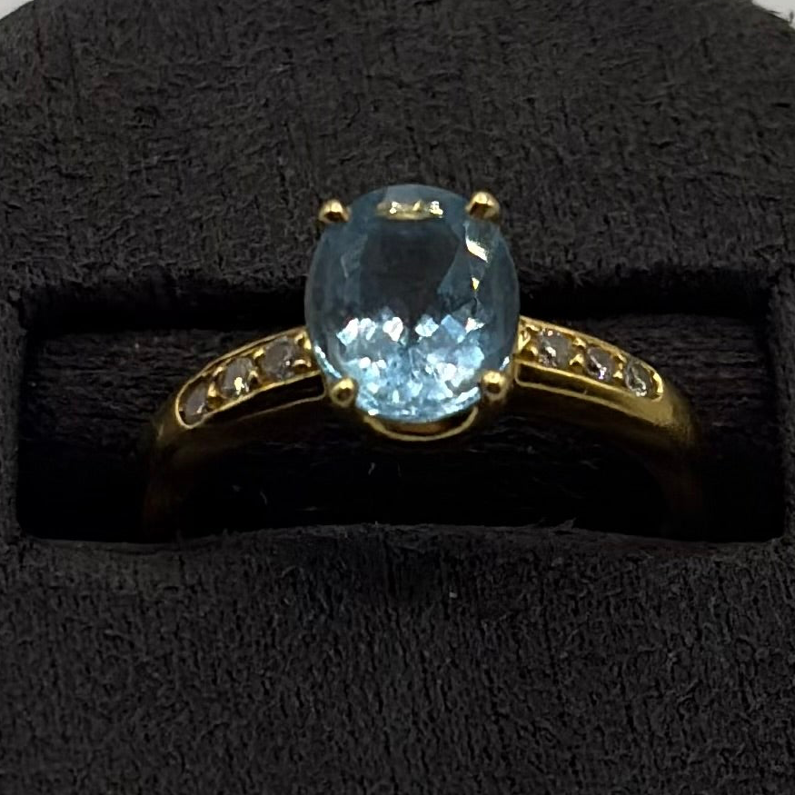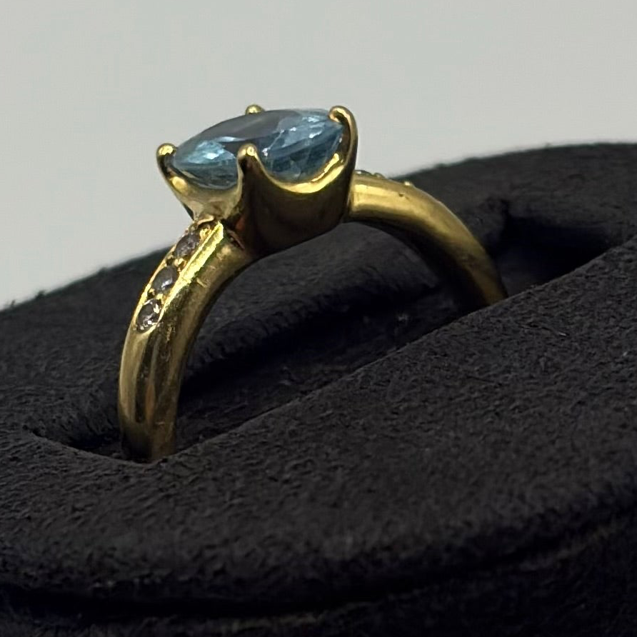 18ct Yellow Gold Aquamarine Ring With Diamonds