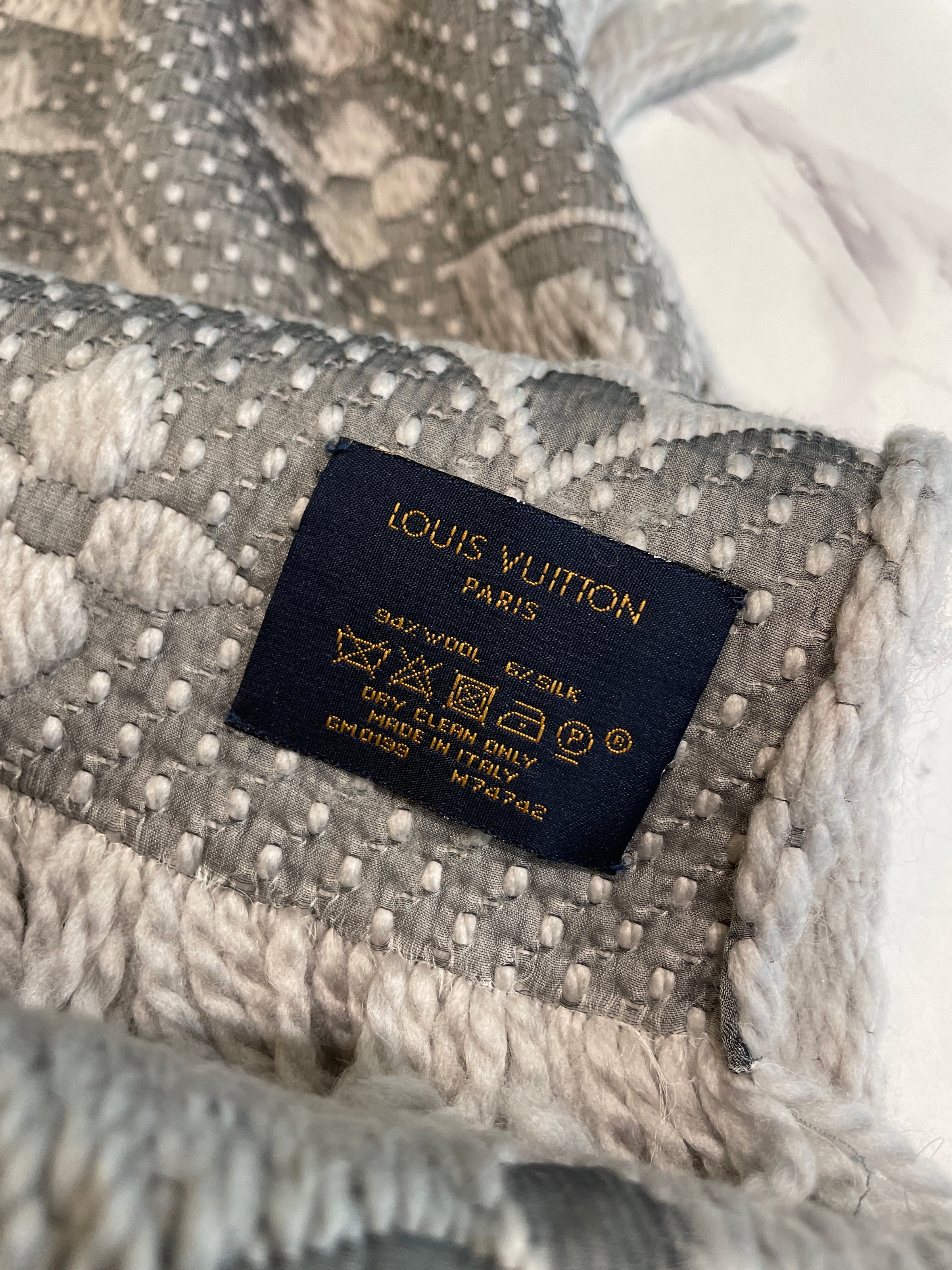 Presented in an elegant grey tone, this scarf is both versatile and timeless. Many Louis Vuitton silk and wool designs feature the iconic LV monogram or subtle house motifs woven into the fabric, delivering understated brand recognition. Generously proportioned, it can be styled as a scarf, wrap or travel shawl, making it a practical yet sophisticated addition to any wardrobe.