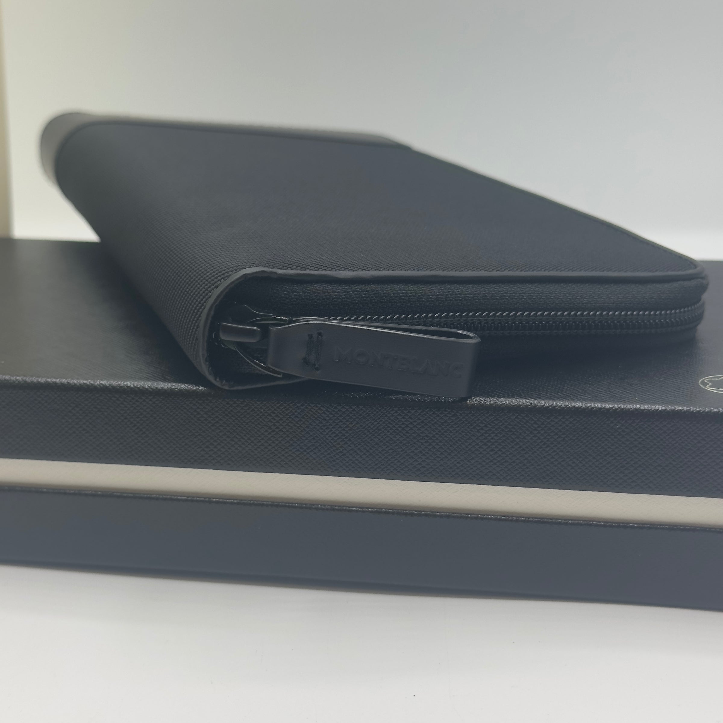 The Montblanc Nightflight Travel Wallet is crafted from durable black nylon with refined leather trim, offering a contemporary yet sophisticated aesthetic suited to frequent travellers. Designed for practicality and organisation, this lightweight wallet features multiple card slots, dedicated compartments for travel documents, boarding passes and currency, along with a secure zip or snap closure depending on the specific model variation.