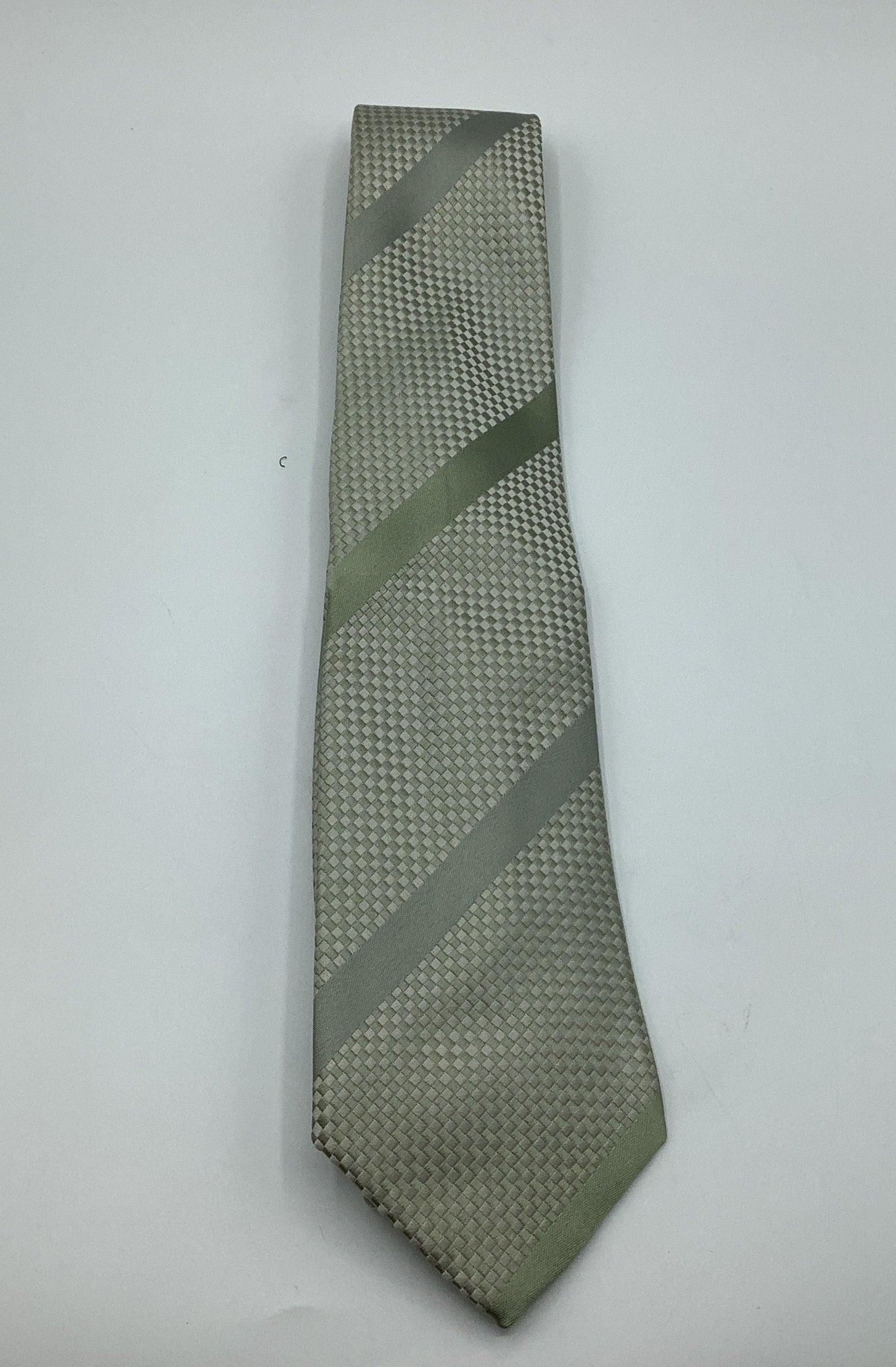 Lanvin Vintage Light Green & Silver Silk Tie