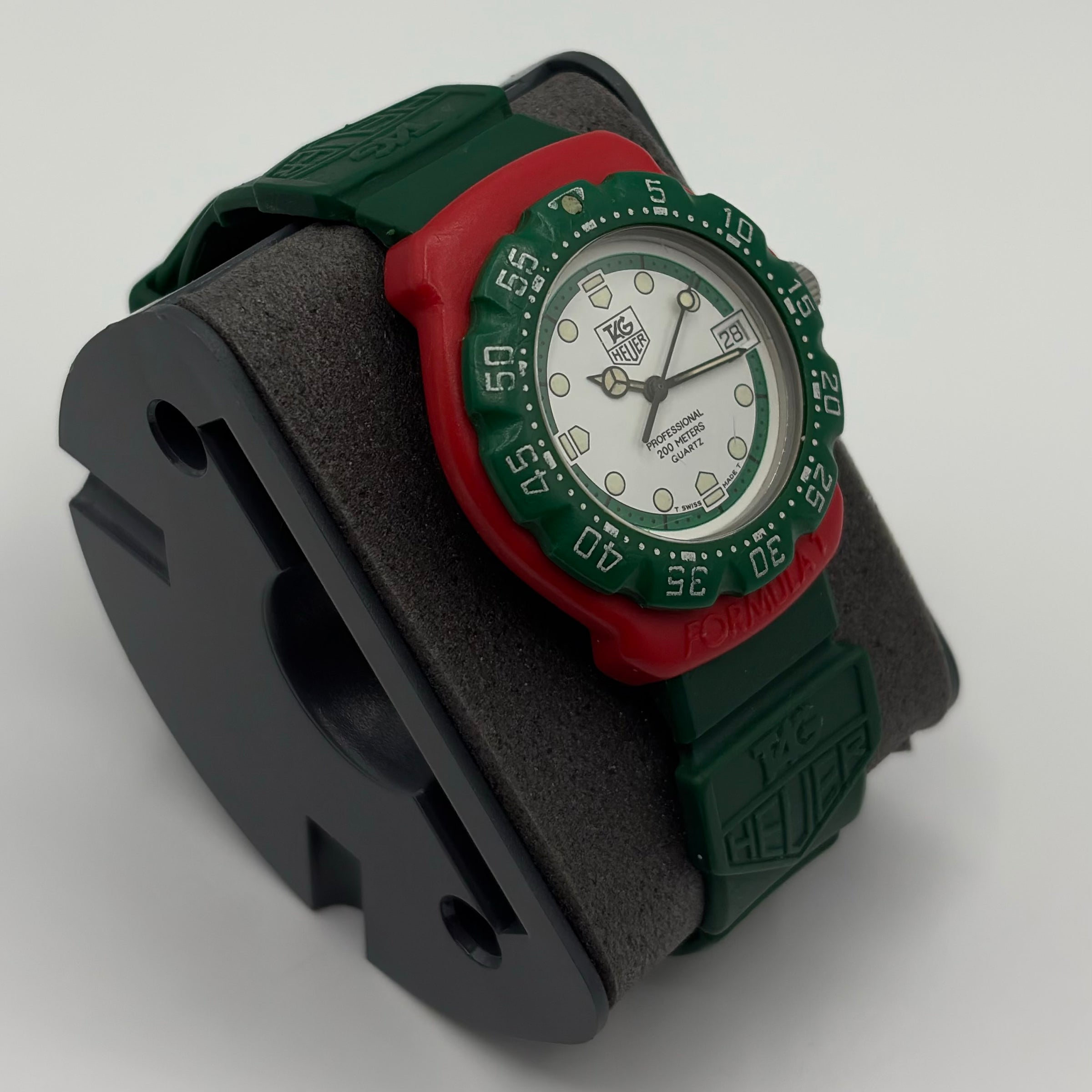 TAG Heuer is a renowned Swiss watchmaker with a heritage deeply connected to precision timekeeping and motorsport. The Formula 1 collection, launched in the late 1980s, marked a bold new era for the brand, introducing vibrant designs, advanced materials, and dependable quartz movements. Early references such as the 384.513 are now highly sought after for their originality, durability, and significance within TAG Heuer’s modern history.