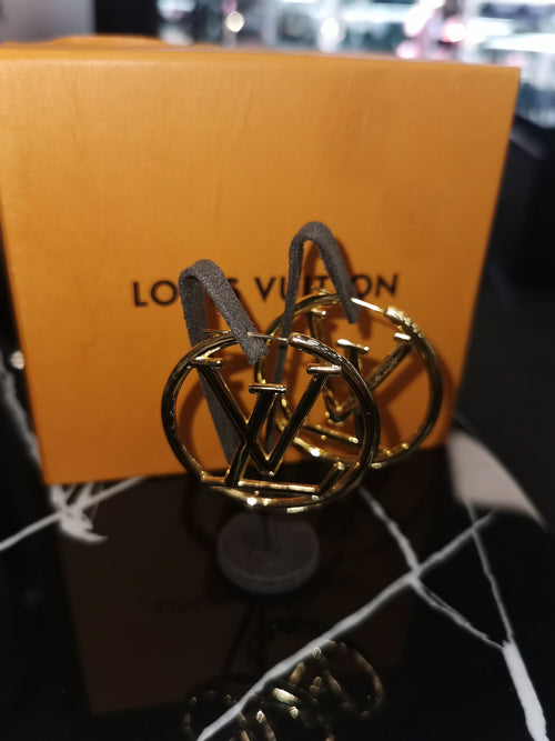 Vintage CHANEL Classic CC Logo gold Earrings with Crystals