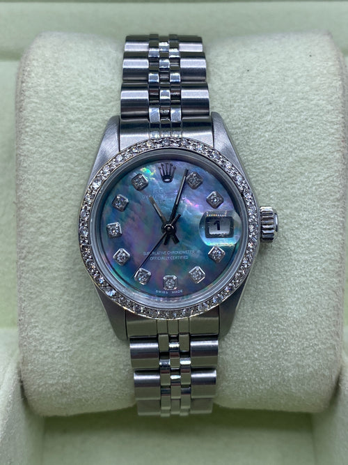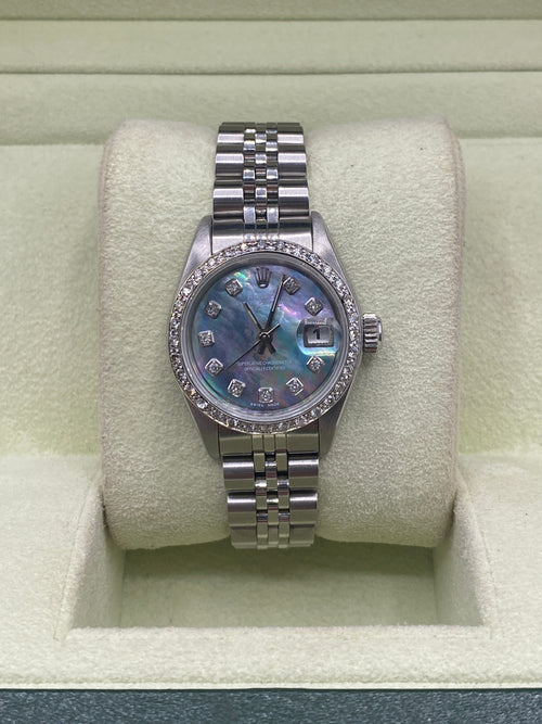 Rolex Datejust 26mm Stainless Steel Blue mother of Pearl Afterset Diamonds