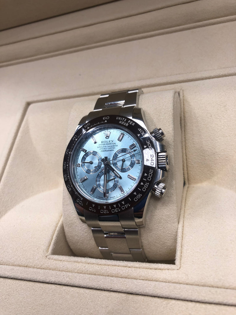 Rolex “Ice Blue” 2020 Platinum Daytona Ceramic Bezel 116506 Full Set unworn