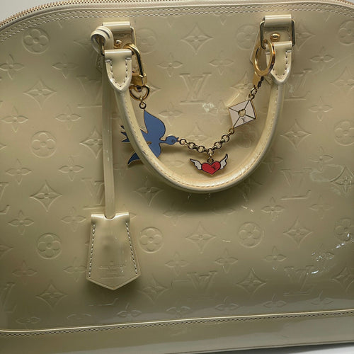 Louis Vuitton Alma Patent Leather Cream Bag With Charm