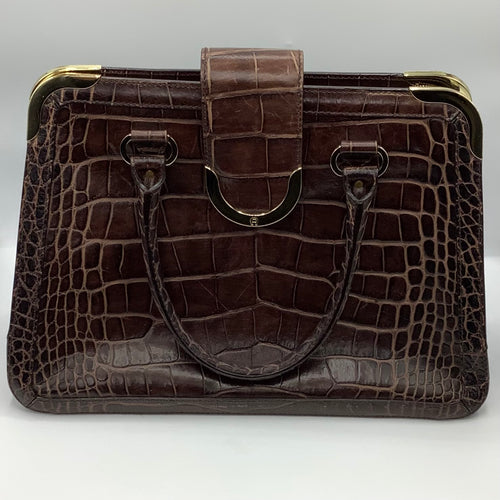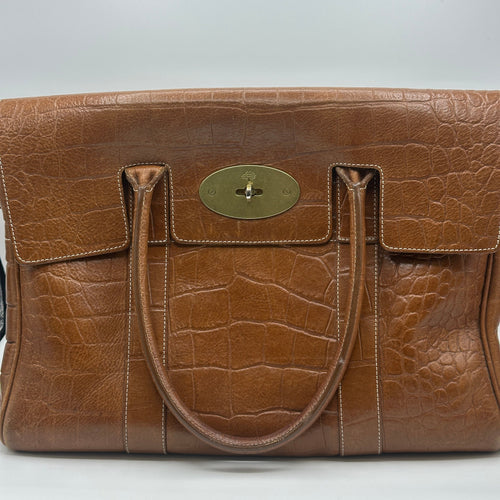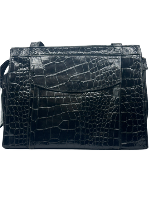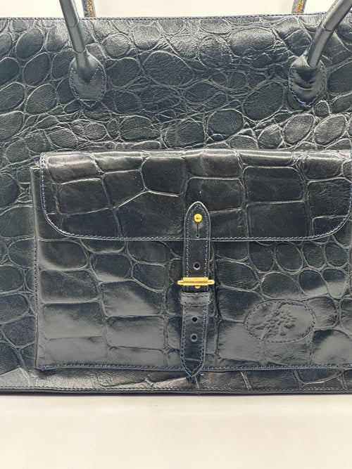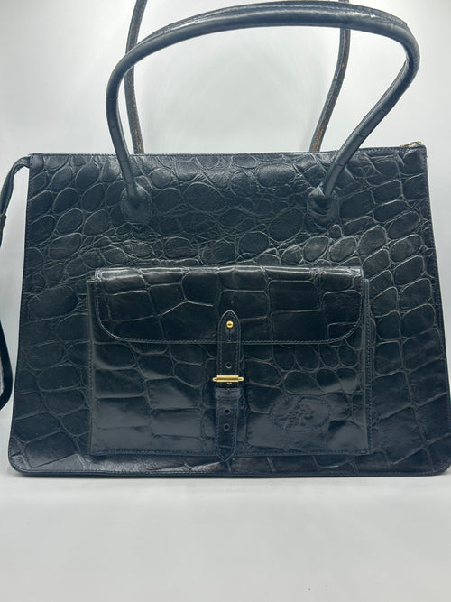Vintage Mulberry Black Croc-Embossed Tota Handbag