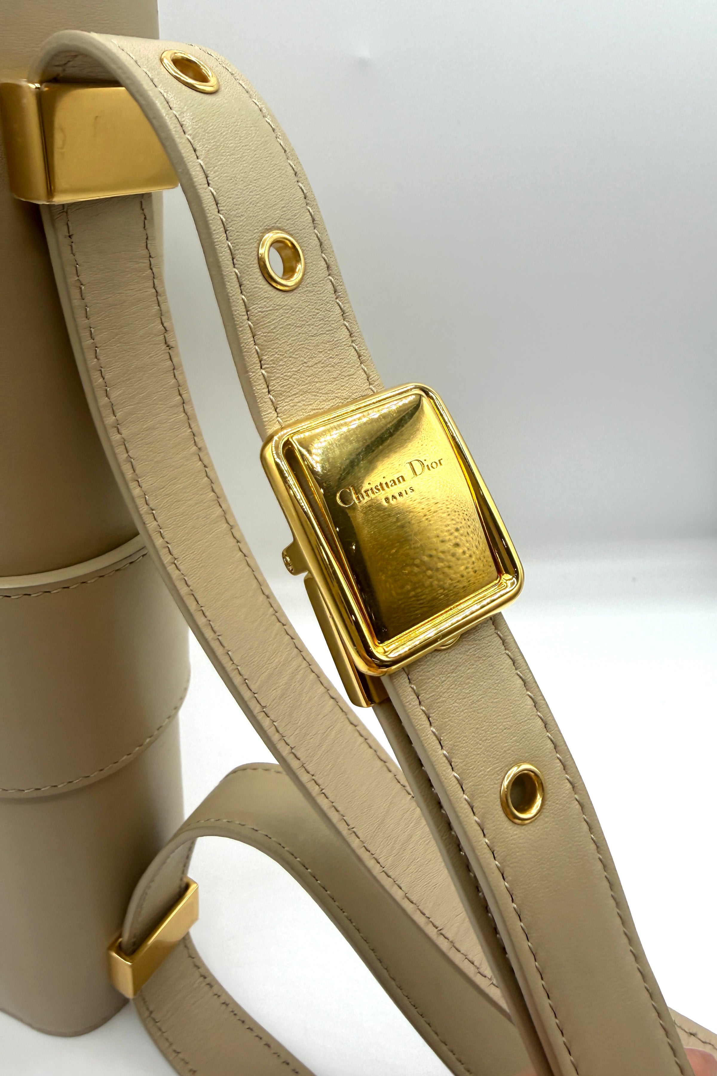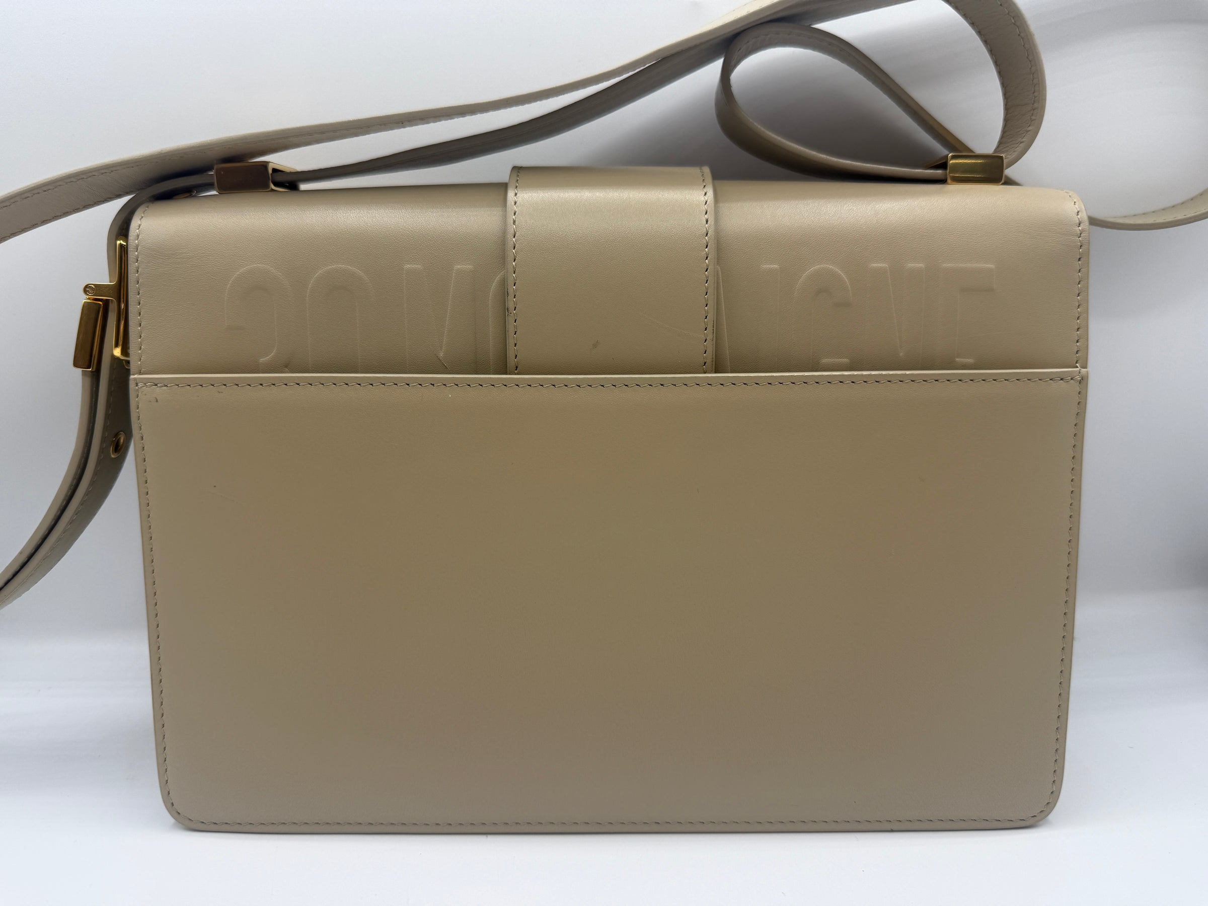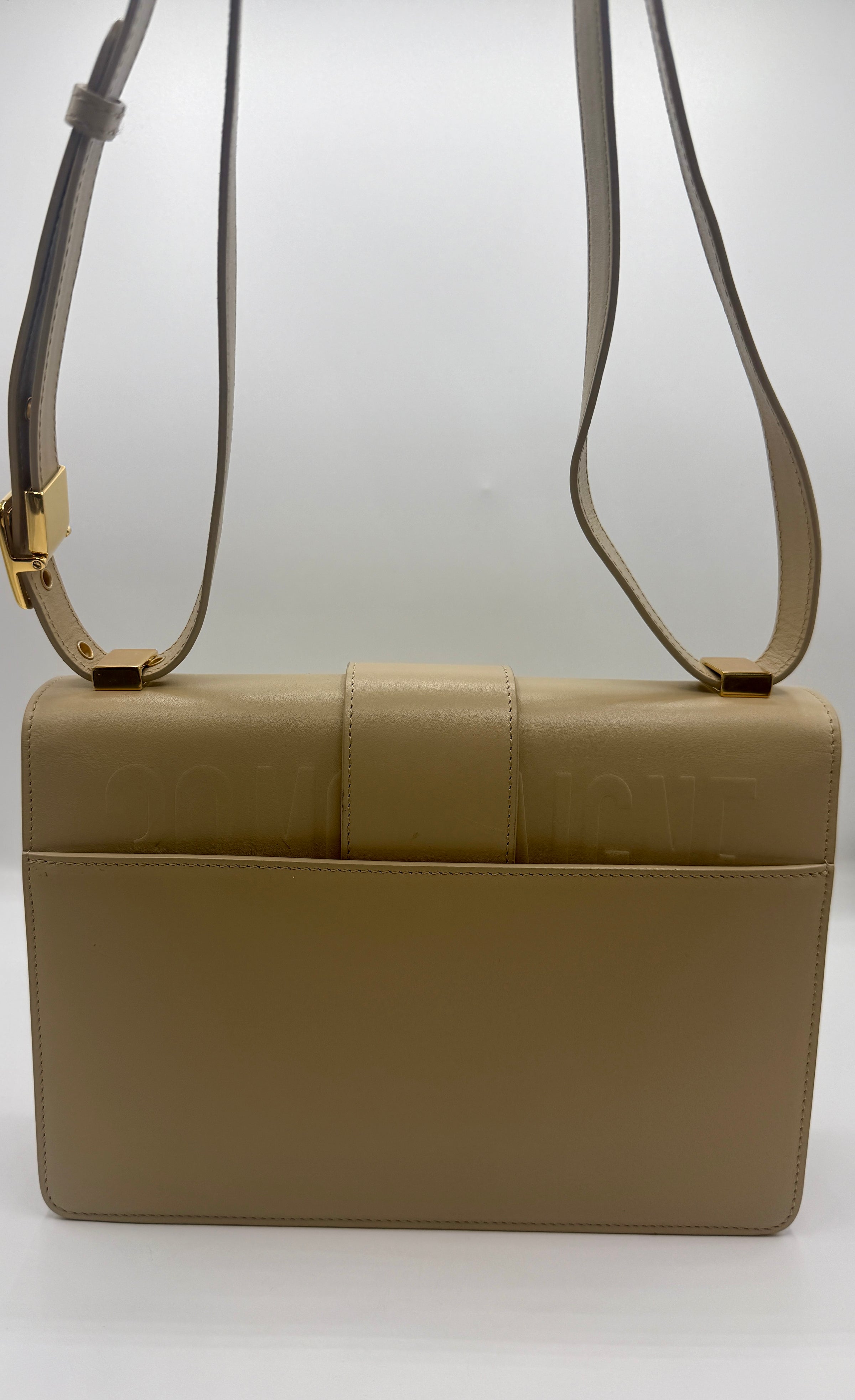 The Dior 30 Montaigne Shoulder Bag in beige calfskin leather is a sophisticated and structured design that reflects the timeless elegance of the house. Crafted from smooth premium leather, the bag features a clean flap-front silhouette finished with the iconic antique gold-tone CD clasp, a signature element that instantly identifies the piece as part of Dior’s celebrated 30 Montaigne collection.