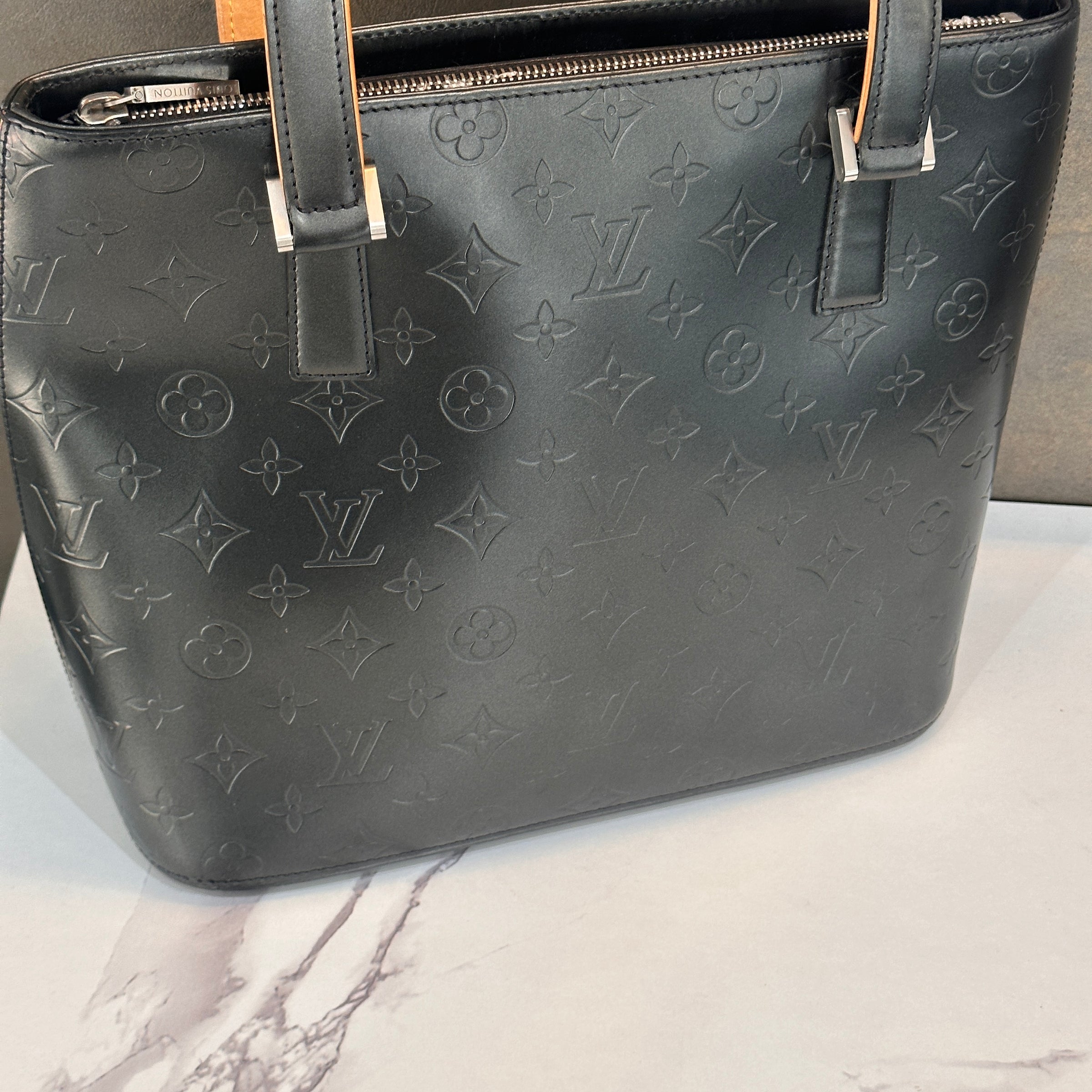 Stylish Louis Vuitton Stockton bag with a double blue leather strap that allows it to be worn both in the hand and on the shoulder. The bag is made of blue empreinte monogram leather and has silver metal fasteners.