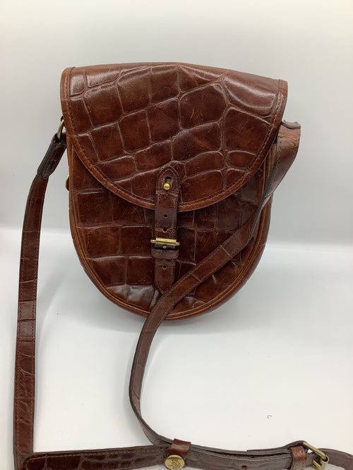 Vintage Mulberry Brown Croc-Embossed Crossbody