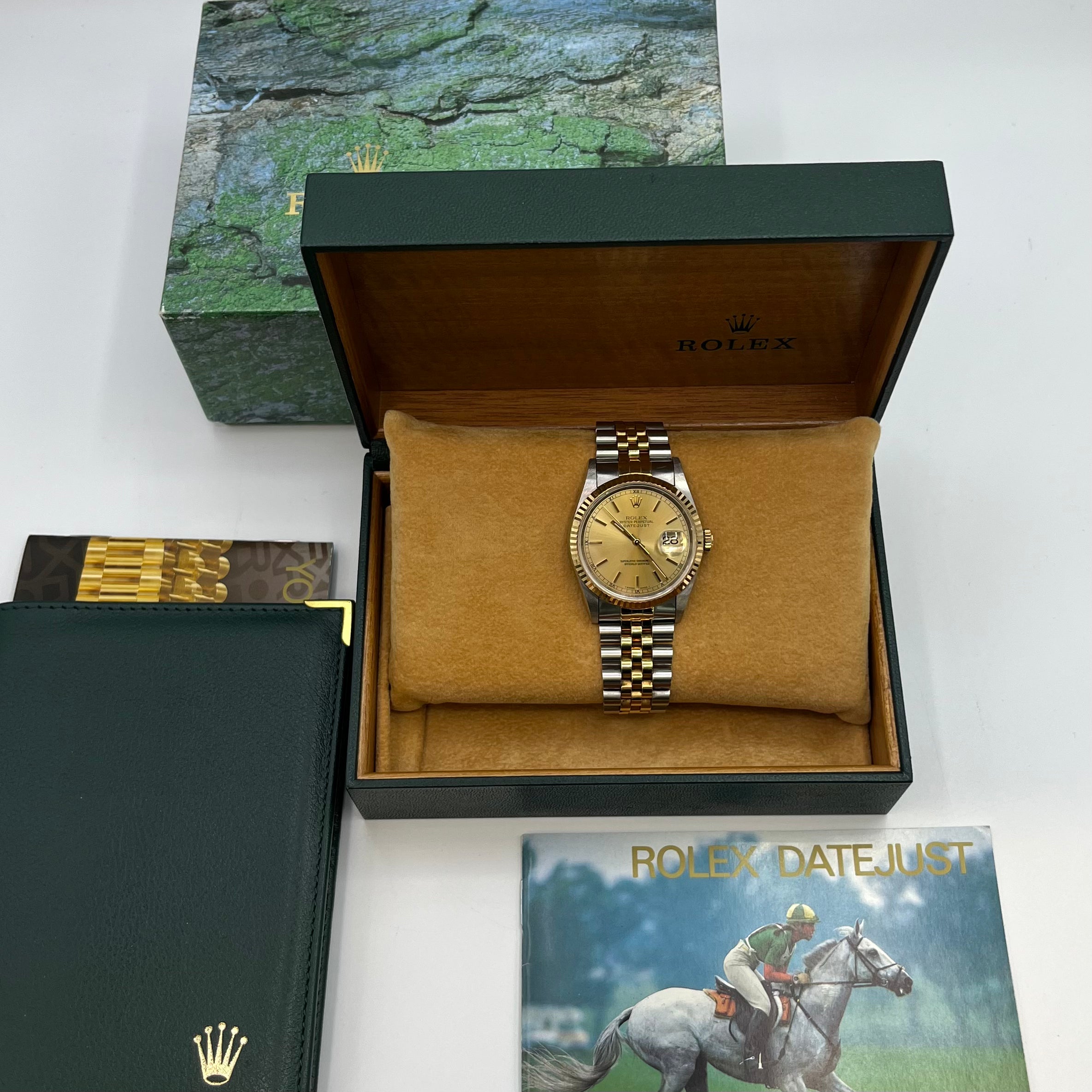 Key Brand Information: Rolex has been at the forefront of watchmaking since its inception in 1905, with the Datejust model introduced in 1945 as the first wristwatch featuring an automatically changing date component. The ref.16233 epitomizes Rolex's dedication to craftsmanship, combining advanced technology with a design aesthetic that respects its heritage. This model beautifully represents the blend of innovation and tradition that Rolex stands for.
