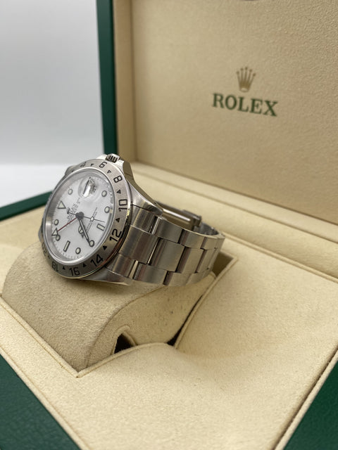Originally introduced in 1989 and manufactured until 2011, the Rolex Explorer 16570 has a case size of 40 mm and a case thickness of 12.2 mm. It has a lug to lug measurement of 47 mm and a lug width of 20 mm, and it used the auto Rolex 3185 caliber movement. This timepiece has a power reserve of 50 hours.