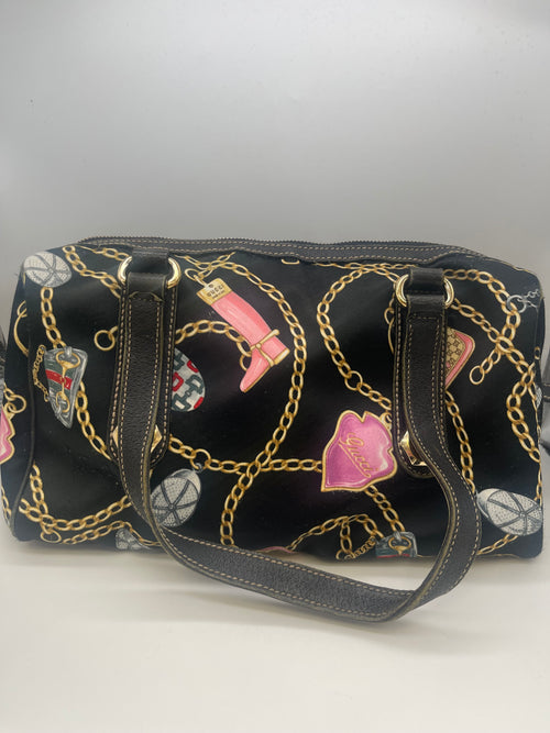 Gucci Monogram Bamboo Boston Bag in Dark Brown