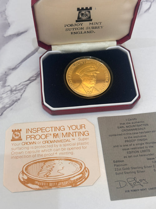 22ct Gold Sterling Silver Earl Mountbatten Crown-medal