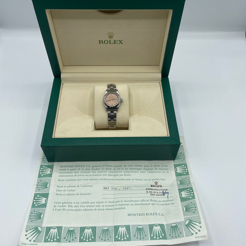 Rolex Ladies Oyster Perpetual Salmon Dial 26mm Authenticity Guarantee