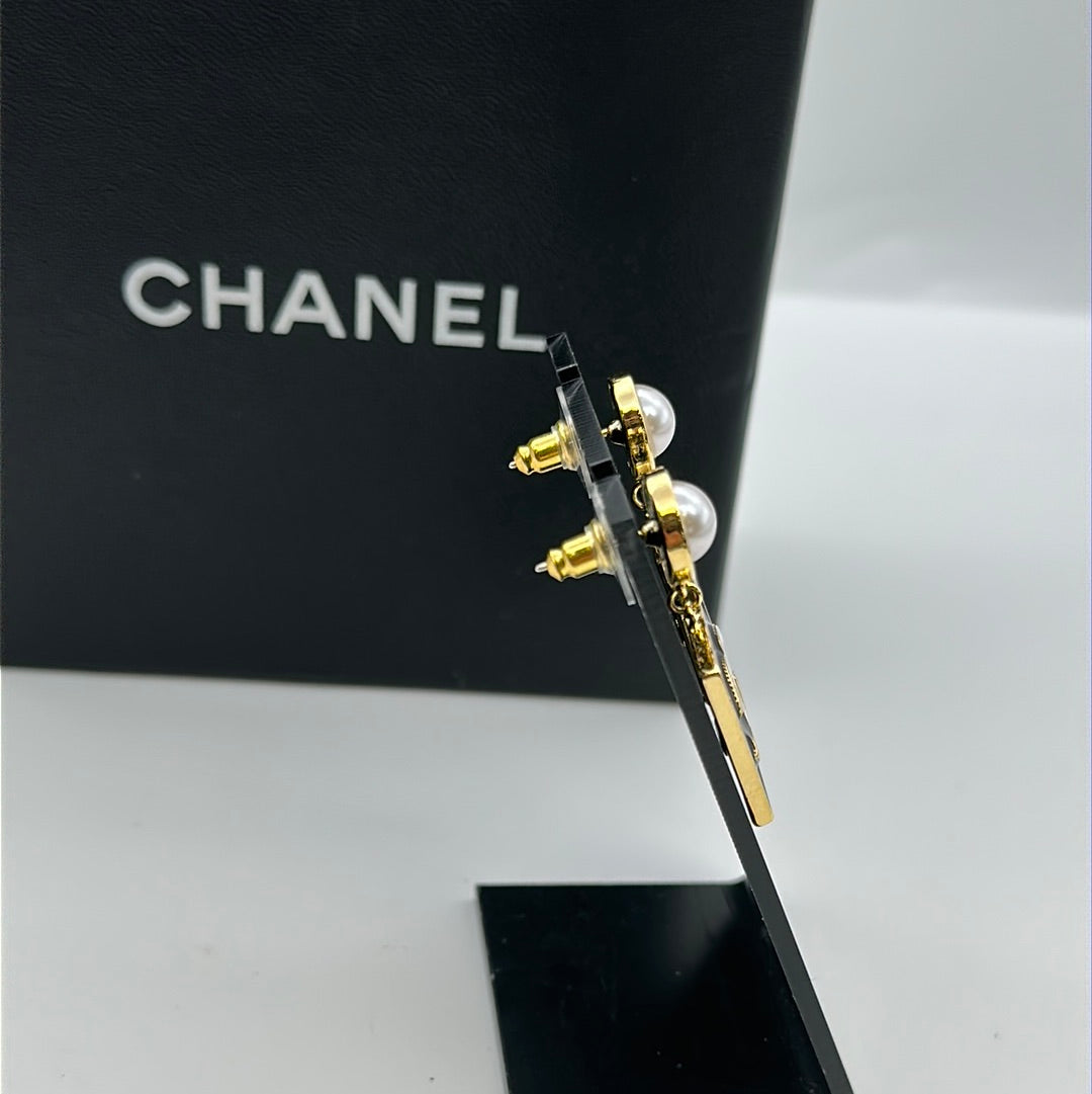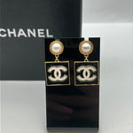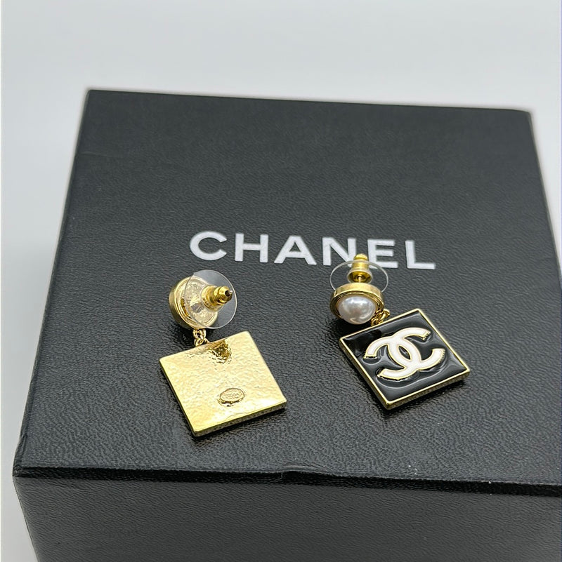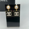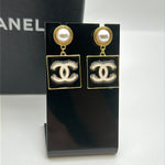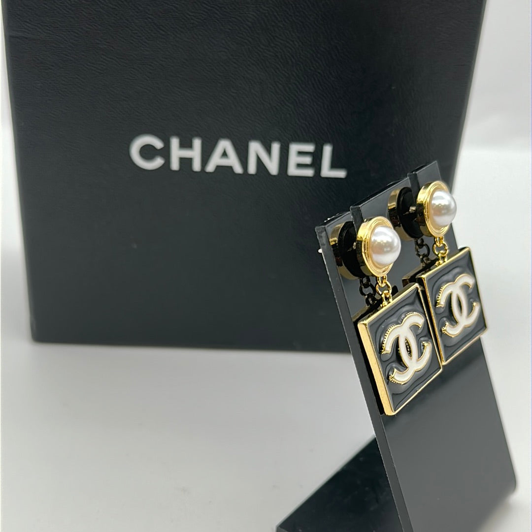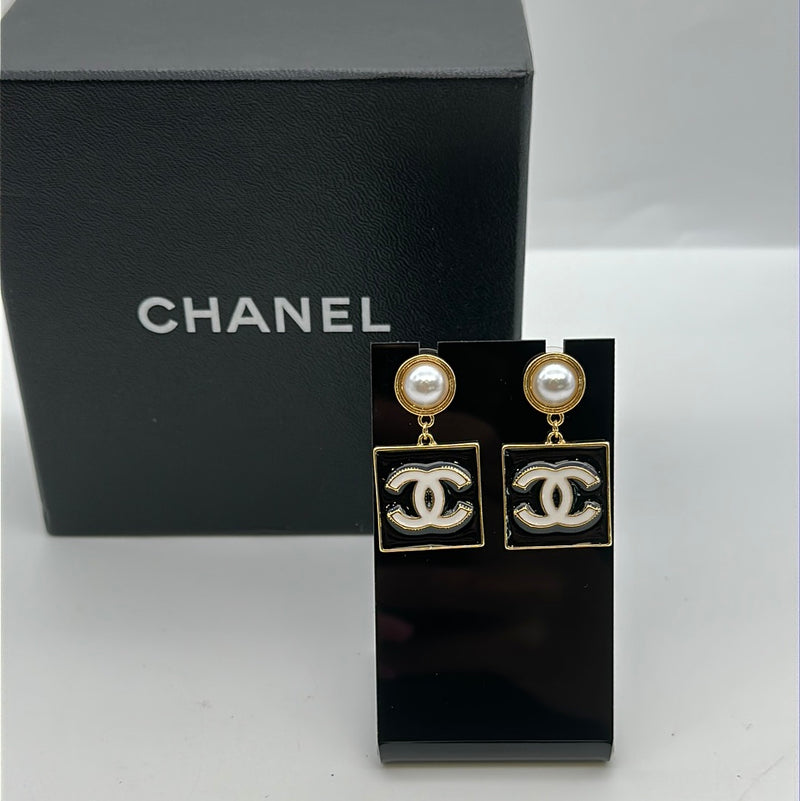 • Materials & Design: These exquisite Chanel drop earrings feature a classic white faux pearl stud that gracefully transitions into a black and white enamel drop, showcasing the iconic interlocking 'CC' logo. The harmonious blend of monochromatic tones and luxurious materials embodies Chanel's timeless elegance.