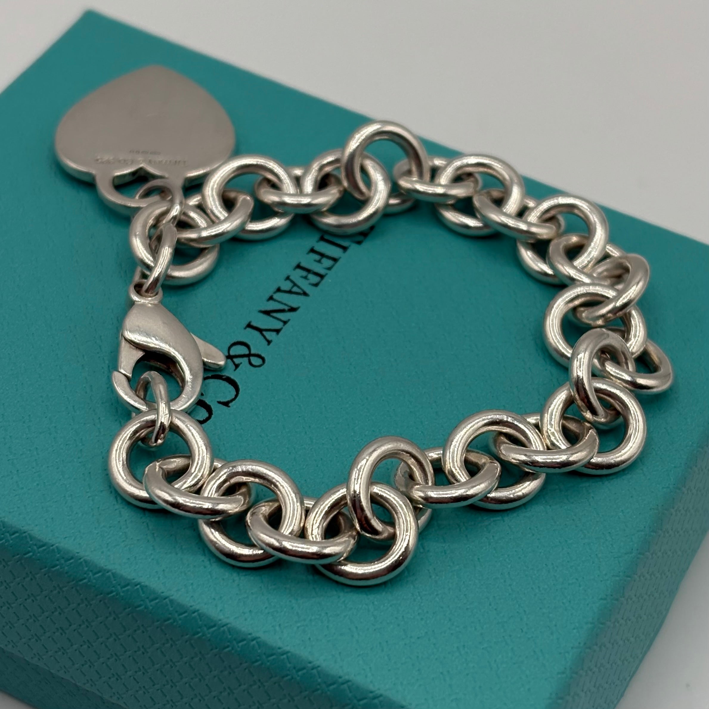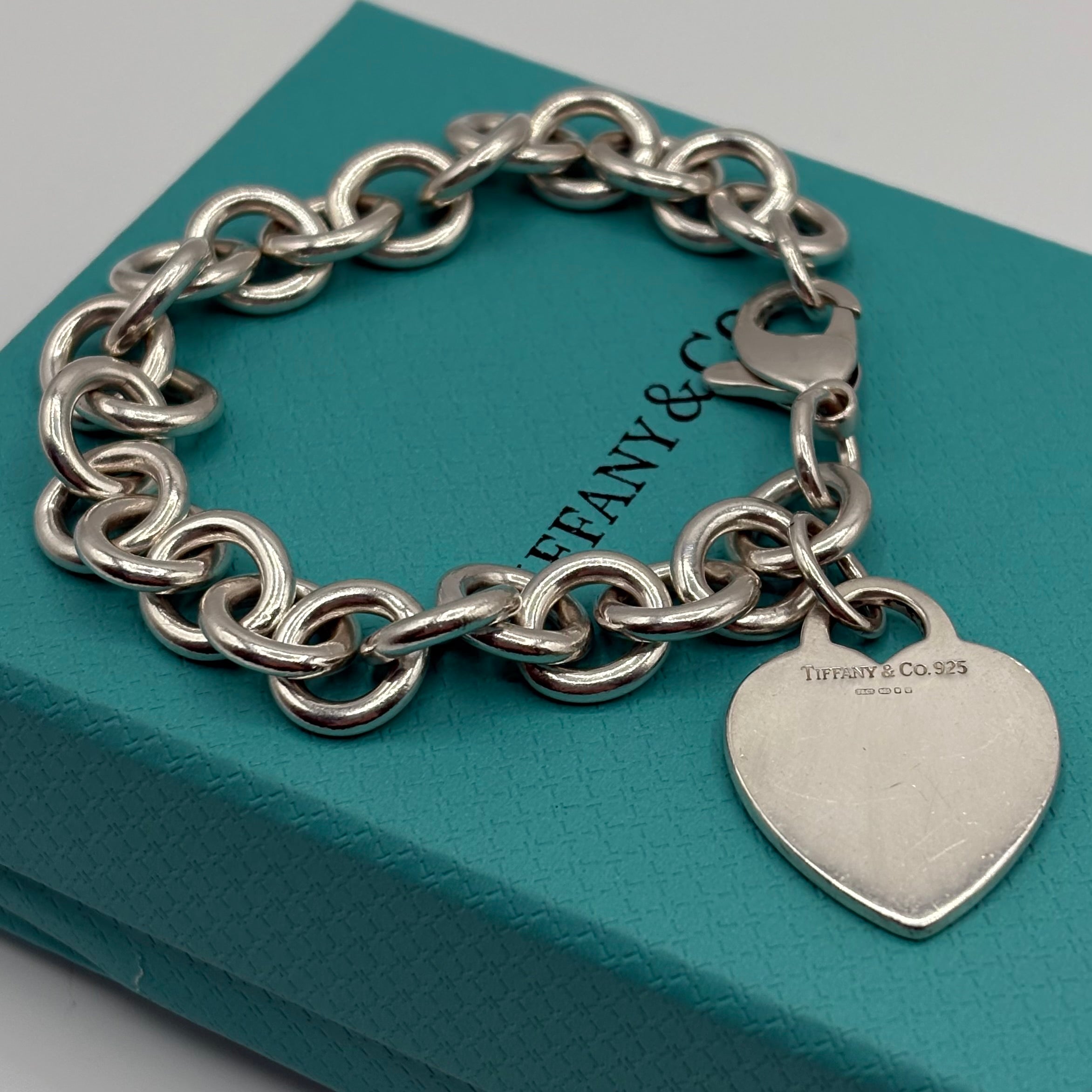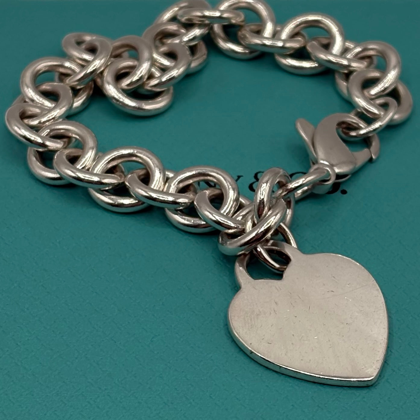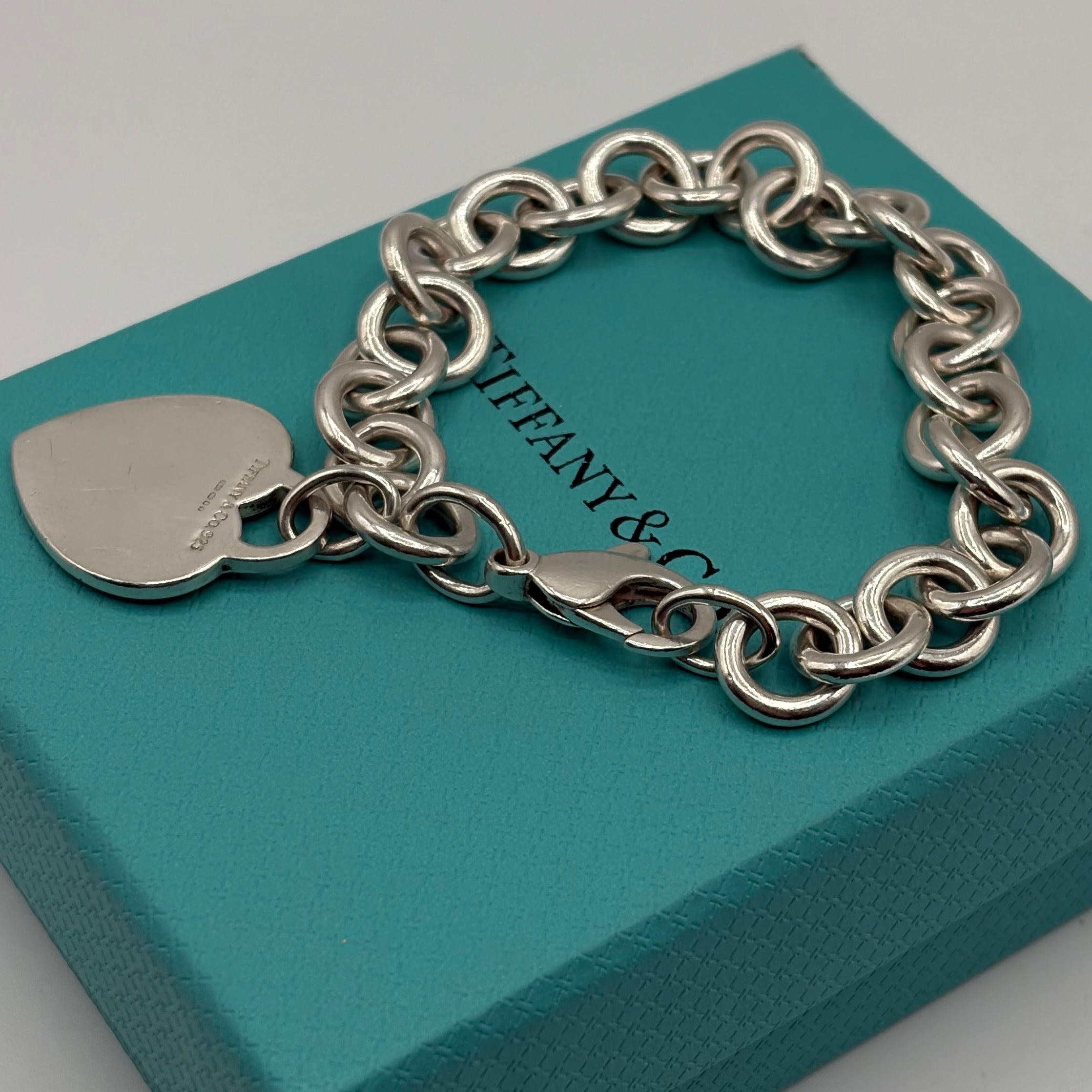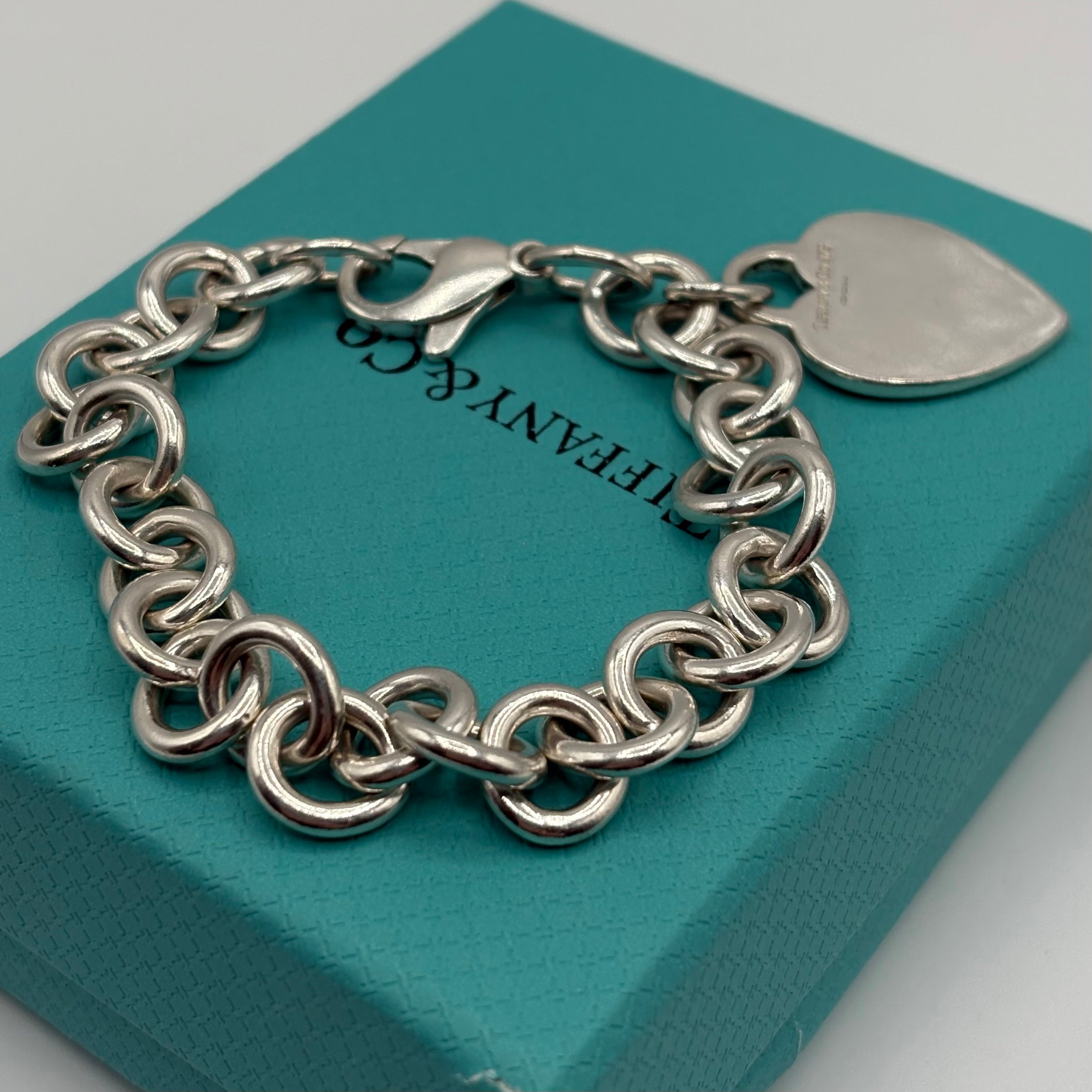 SEO Keywords: Tiffany & Co silver heart tag bracelet, Return to Tiffany charm bracelet, Tiffany heart charm bracelet sterling silver, Tiffany & Co link bracelet.