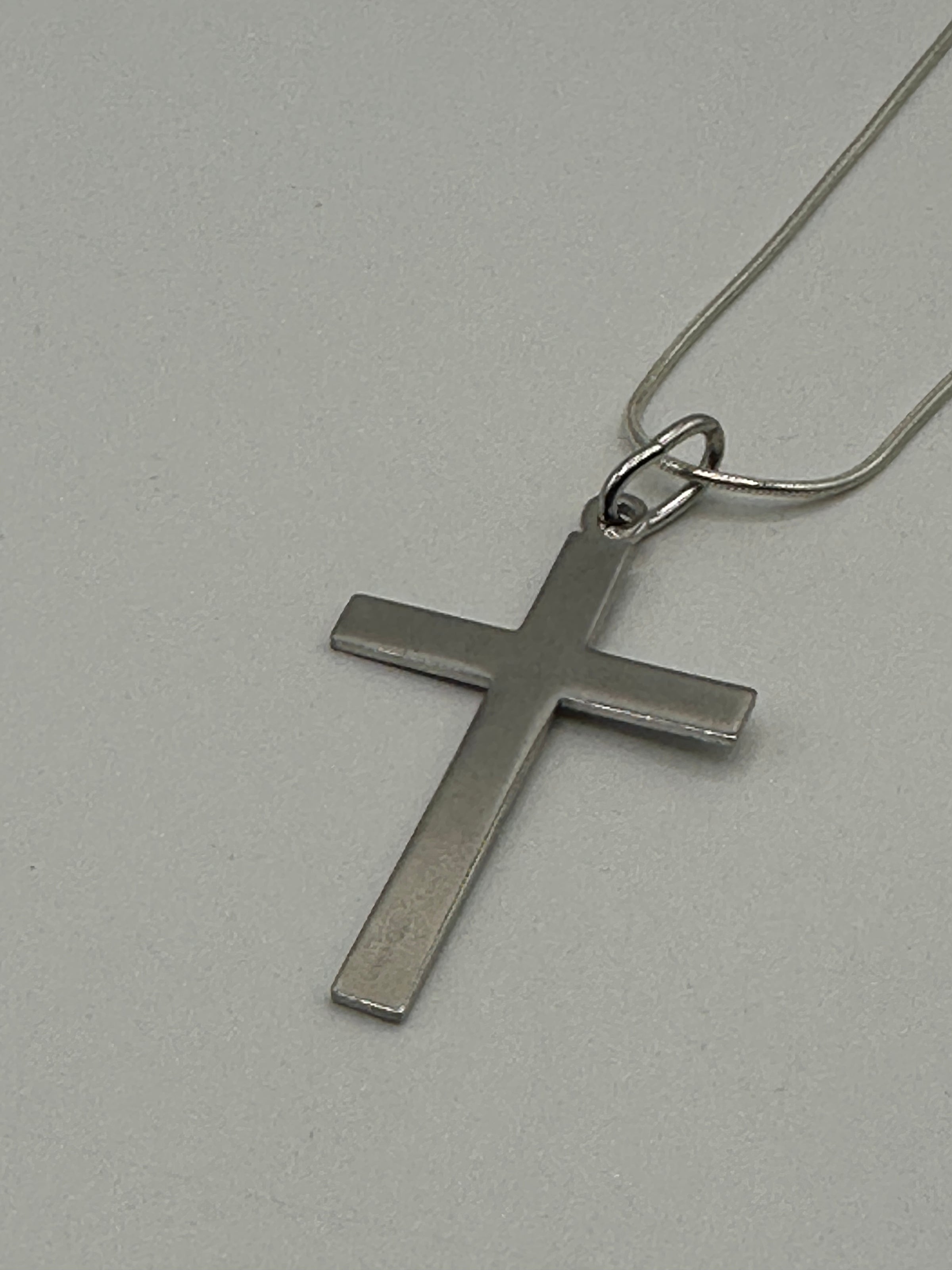 Material: 925 sterling silver cross pendant suspended from a matching snake-style chain