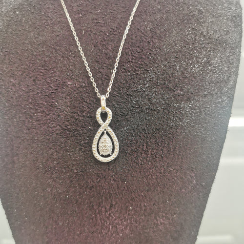 Sterling Silver Fine Curb Chain Necklace, 16" With CZ Pear-shape Pendant