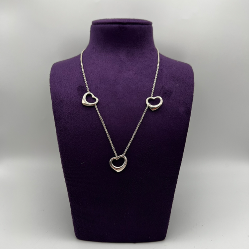 Tiffany & Co. Silver Peretti 3 Open Heart Pendant Necklace