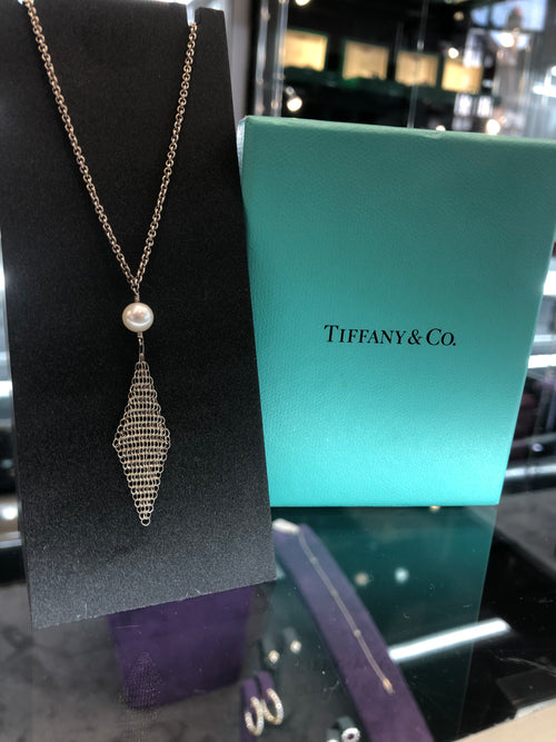 Tiffany & Co. Elsa Peretti® Open Heart Lariat Necklace in Silver with Pearl