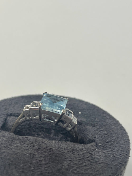 18ct White Gold Aqua Marine And Diamond Ring
