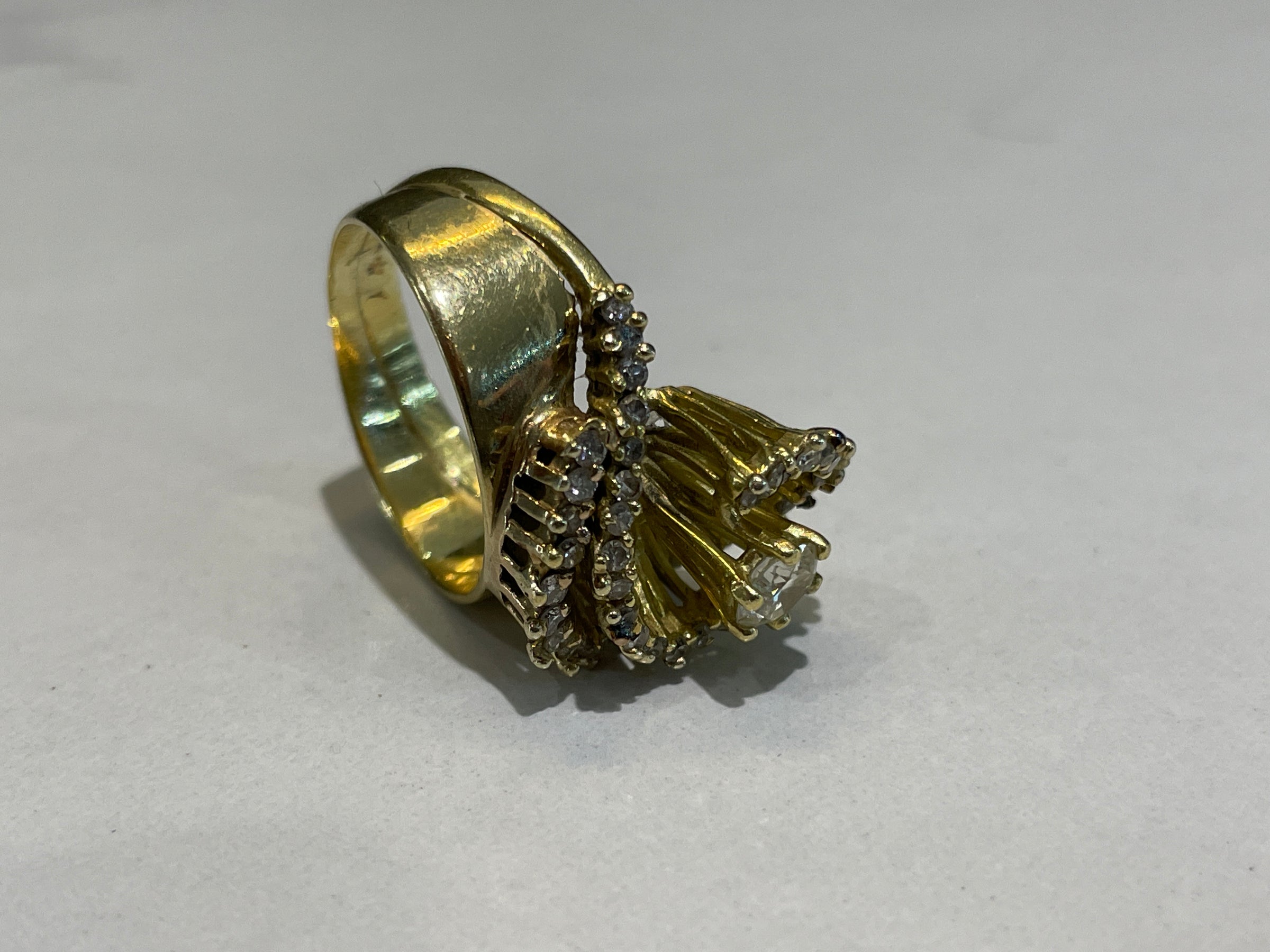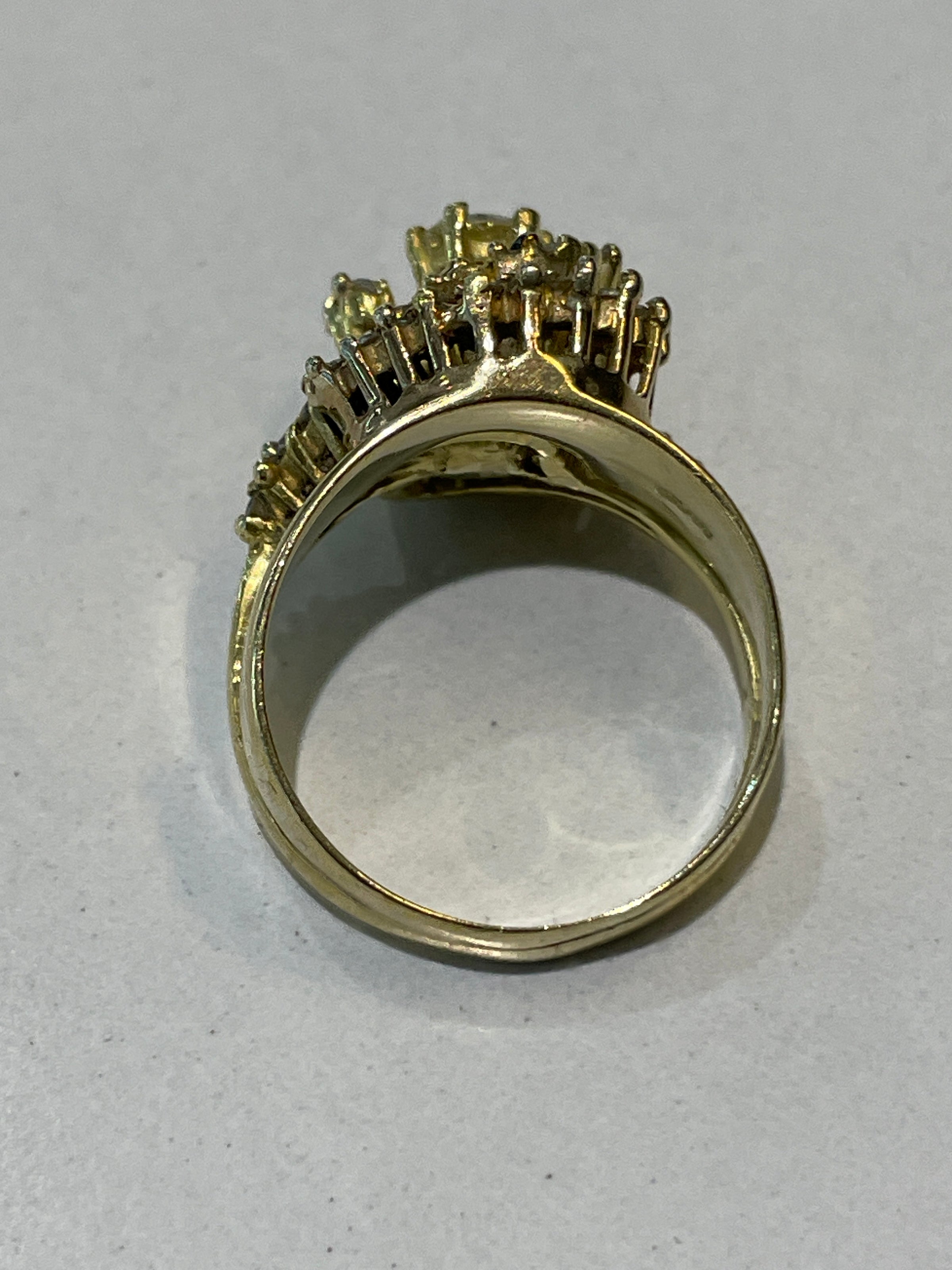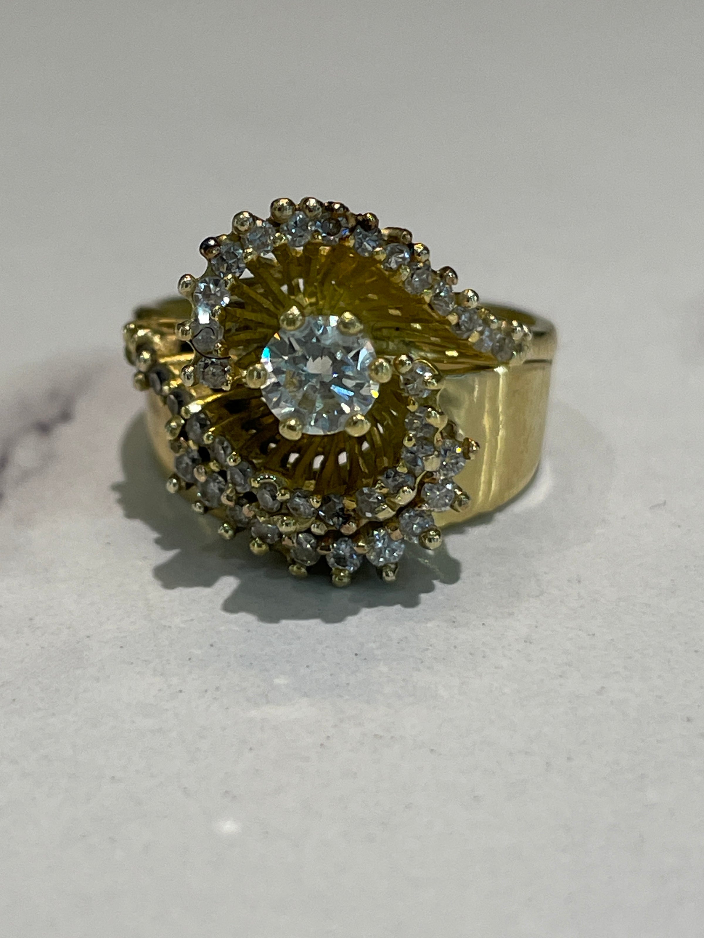 An elegant and fun multi diamond ring that actually is a fusion of two separate rings that adds to its uniqueness. Made of 18 carat yellow gold, this ring has no shortage of diamonds totalling to an approximate total weight of 0.97ct. The swirl design provides a mesmerising effect that would be a perfect gift for all sorts of occasions. -