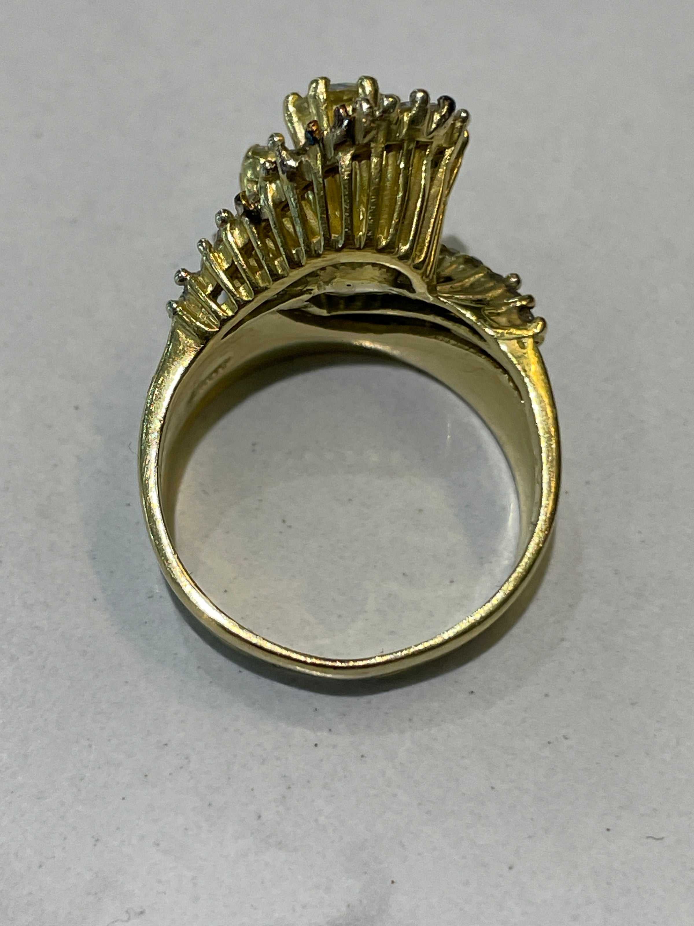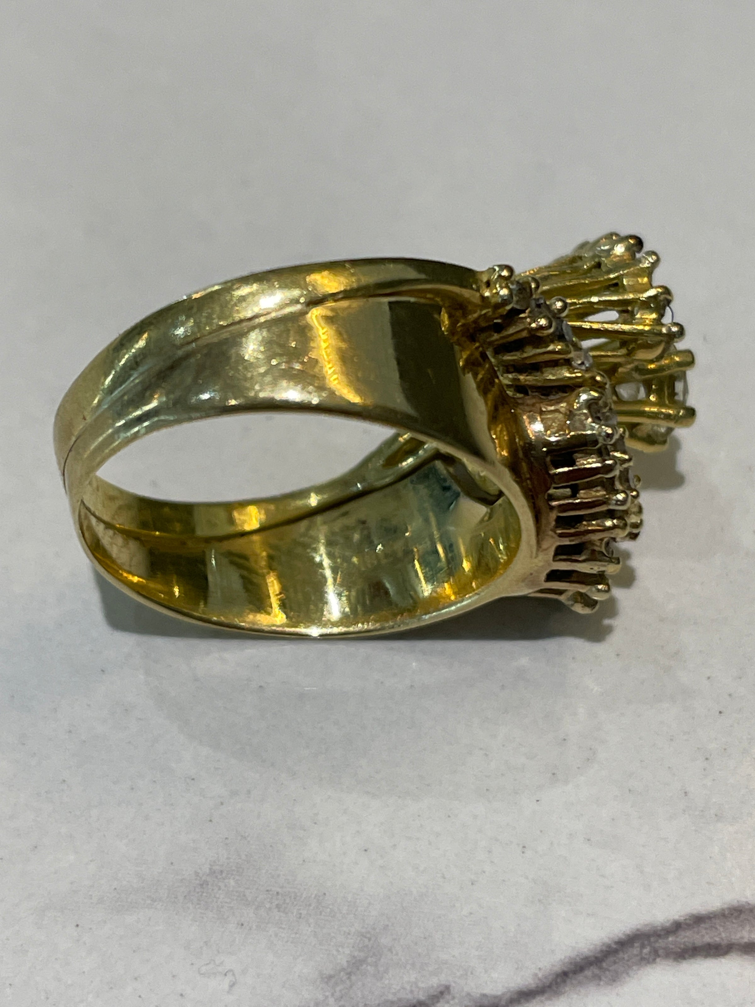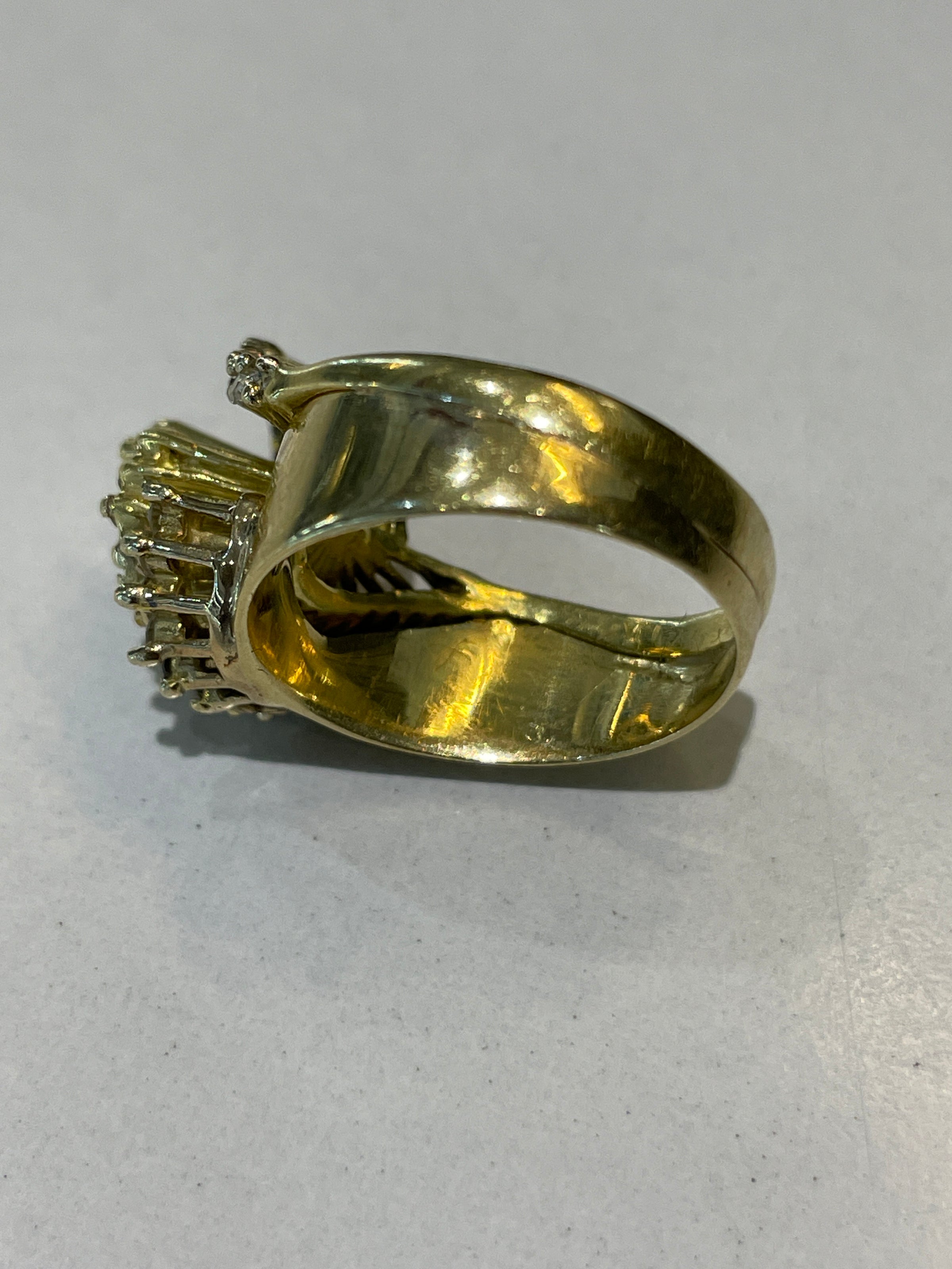 An elegant and fun multi diamond ring that actually is a fusion of two separate rings that adds to its uniqueness. Made of 18 carat yellow gold, this ring has no shortage of diamonds totalling to an approximate total weight of 0.97ct. The swirl design provides a mesmerising effect that would be a perfect gift for all sorts of occasions. -