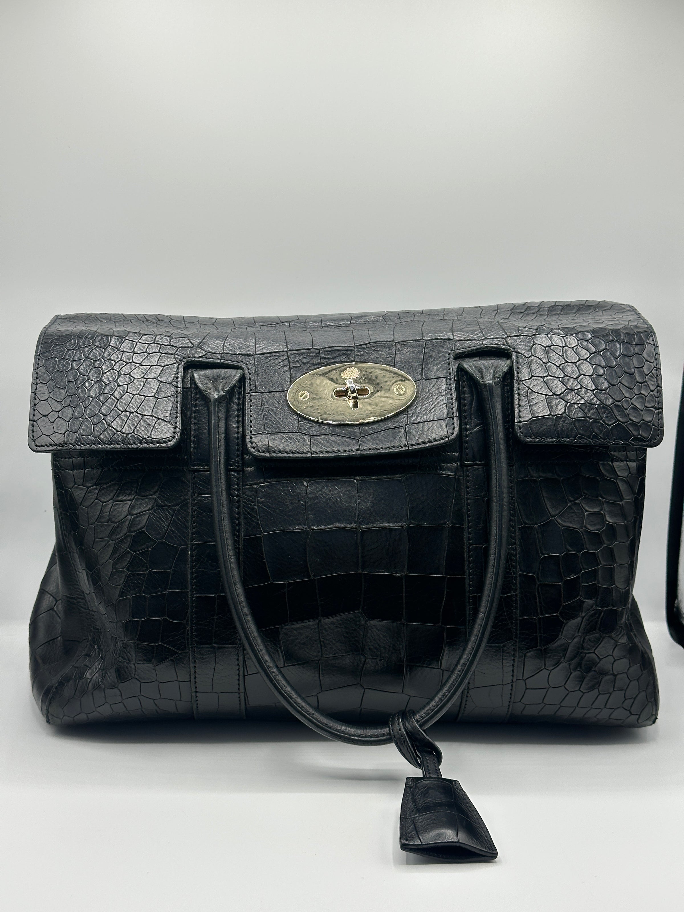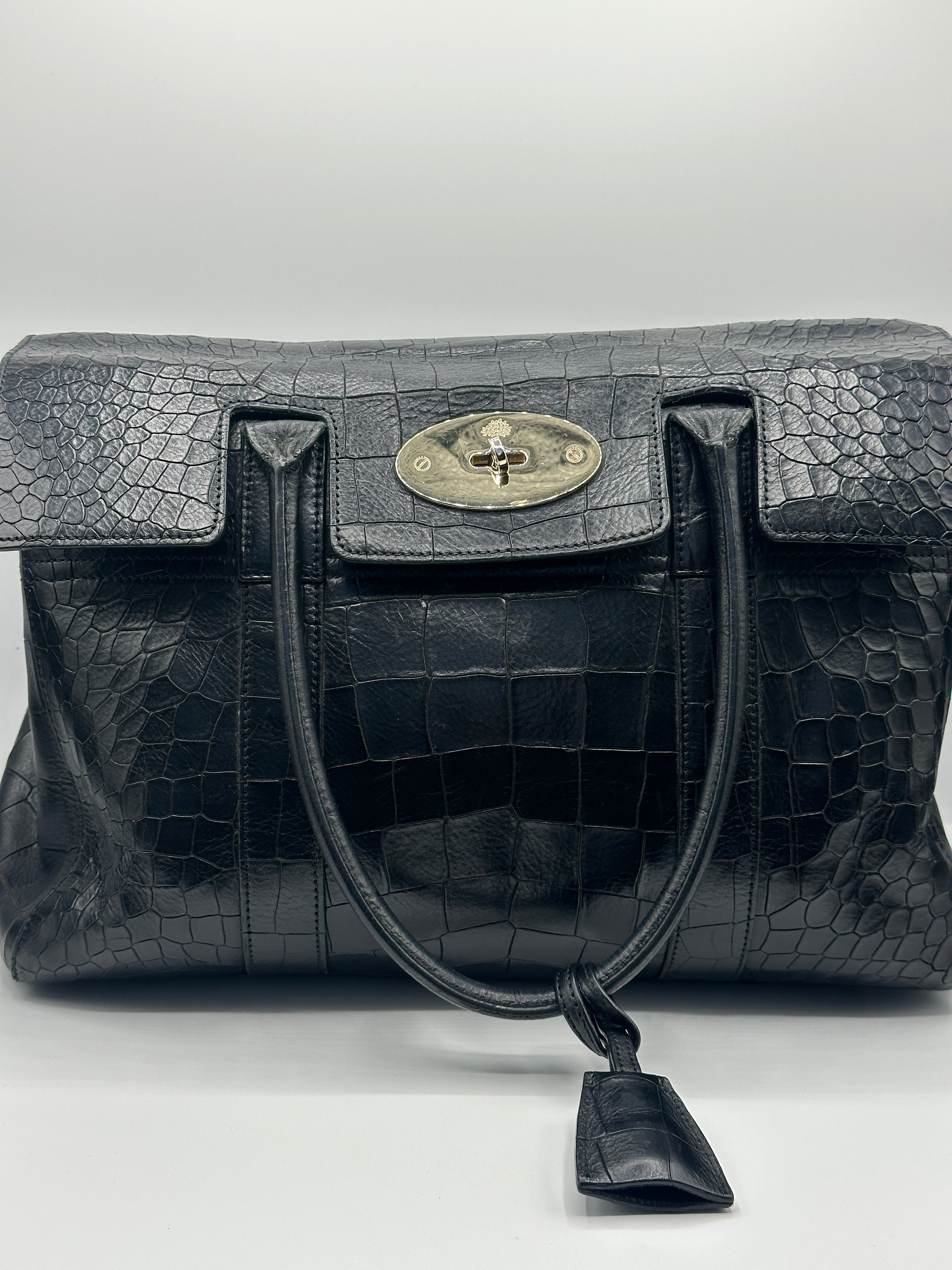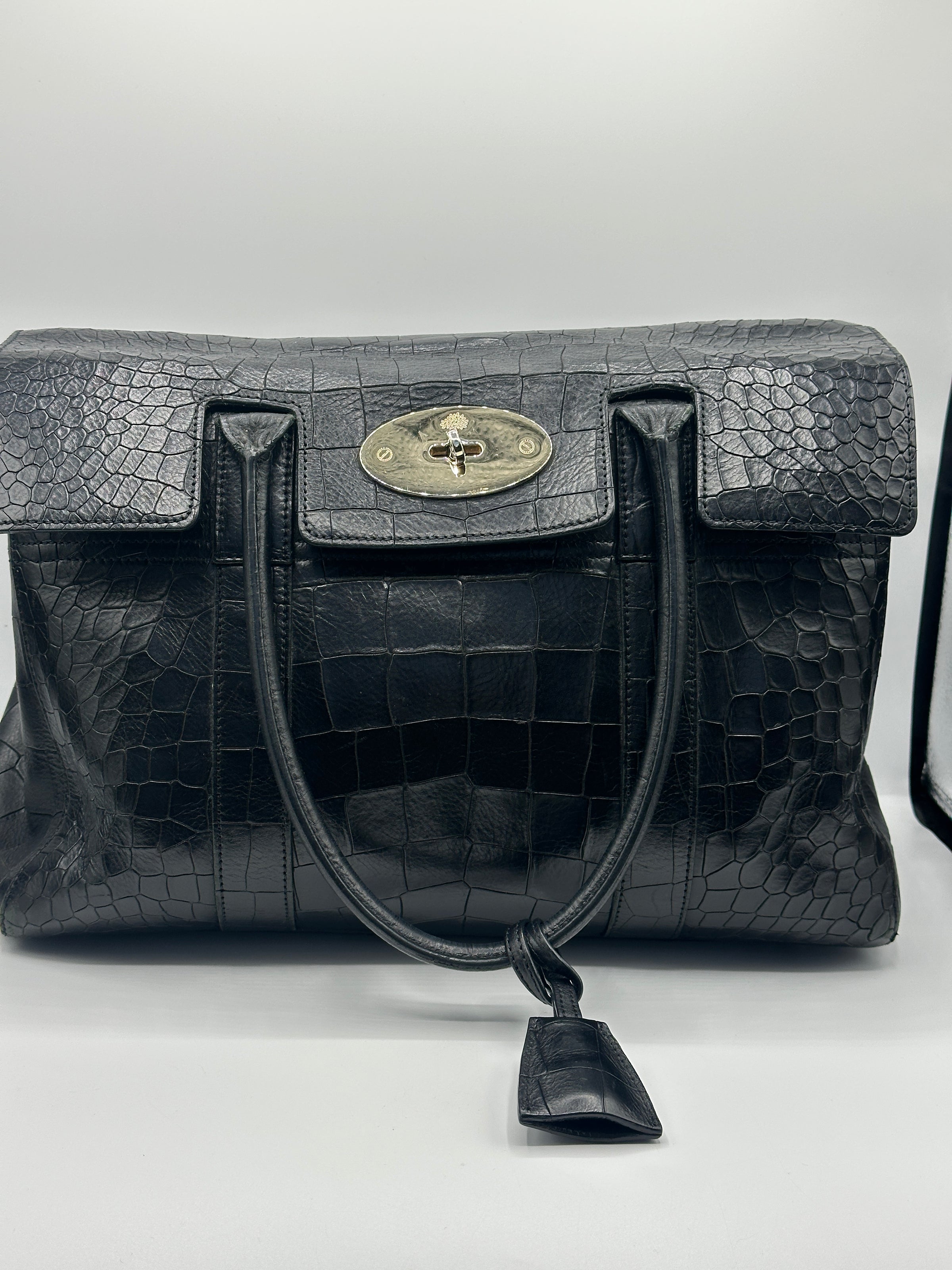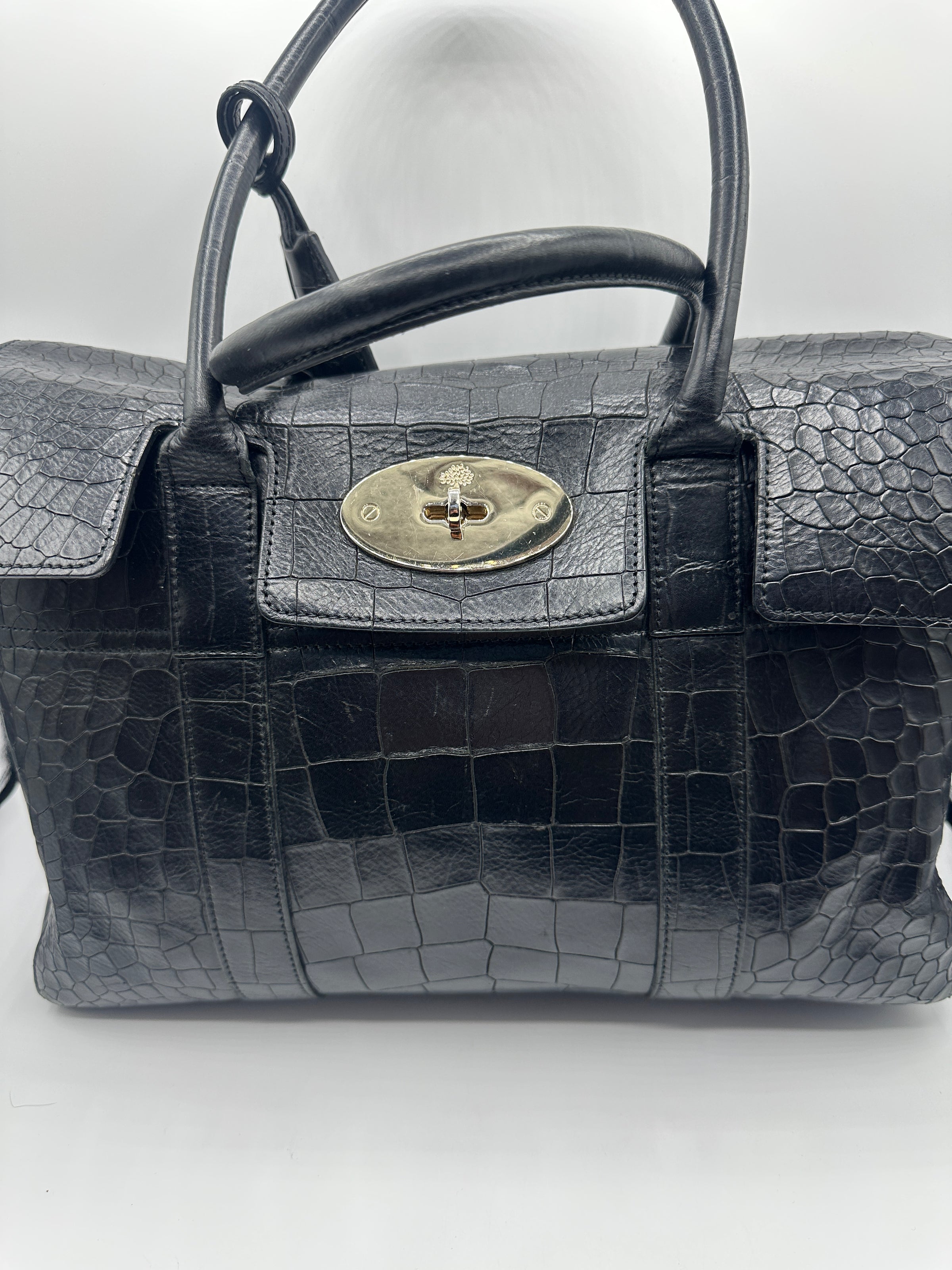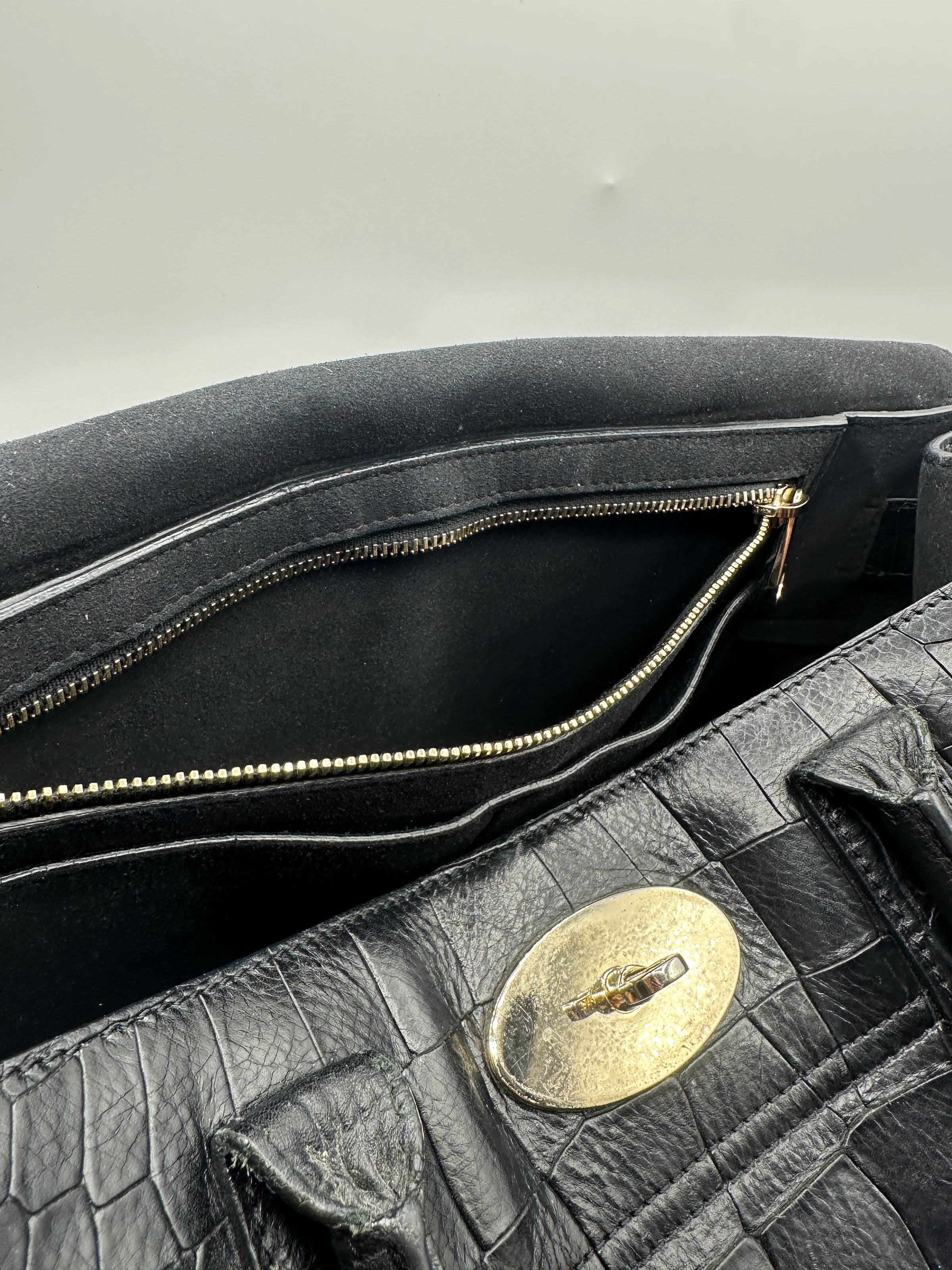 Mulberry Bayswater Classic Black Bag Croc Print Slightly Used