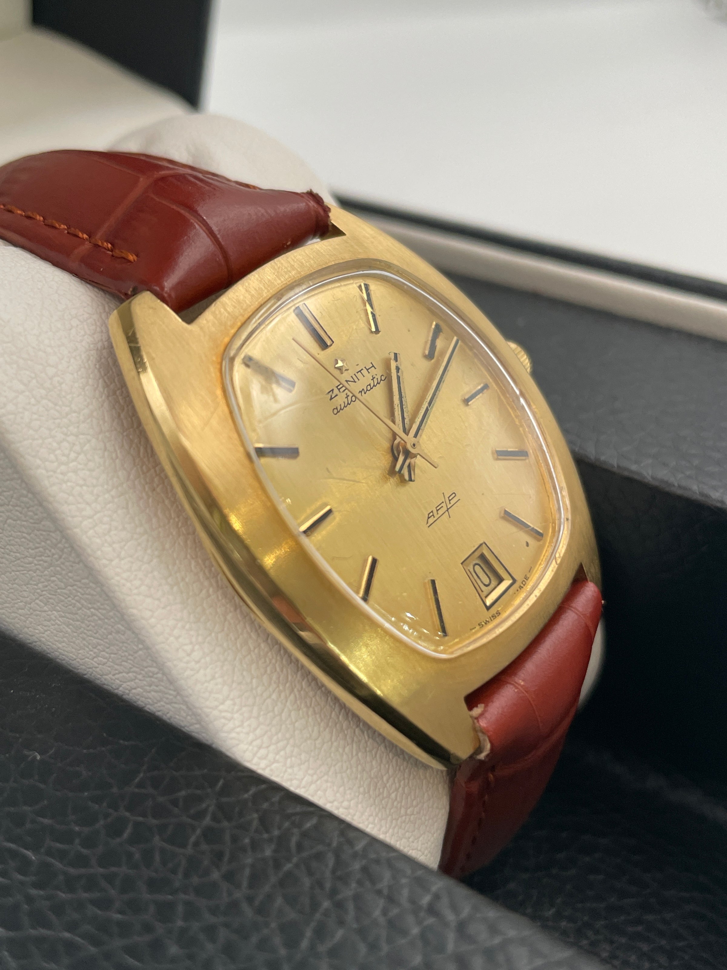 The late 1960s and early 1970s was a time of innovation for Zenith: soon after releasing their famous El Primero chronograph movement, they also explored high-frequency automatic movements for date/day watches — hence AF/P.
