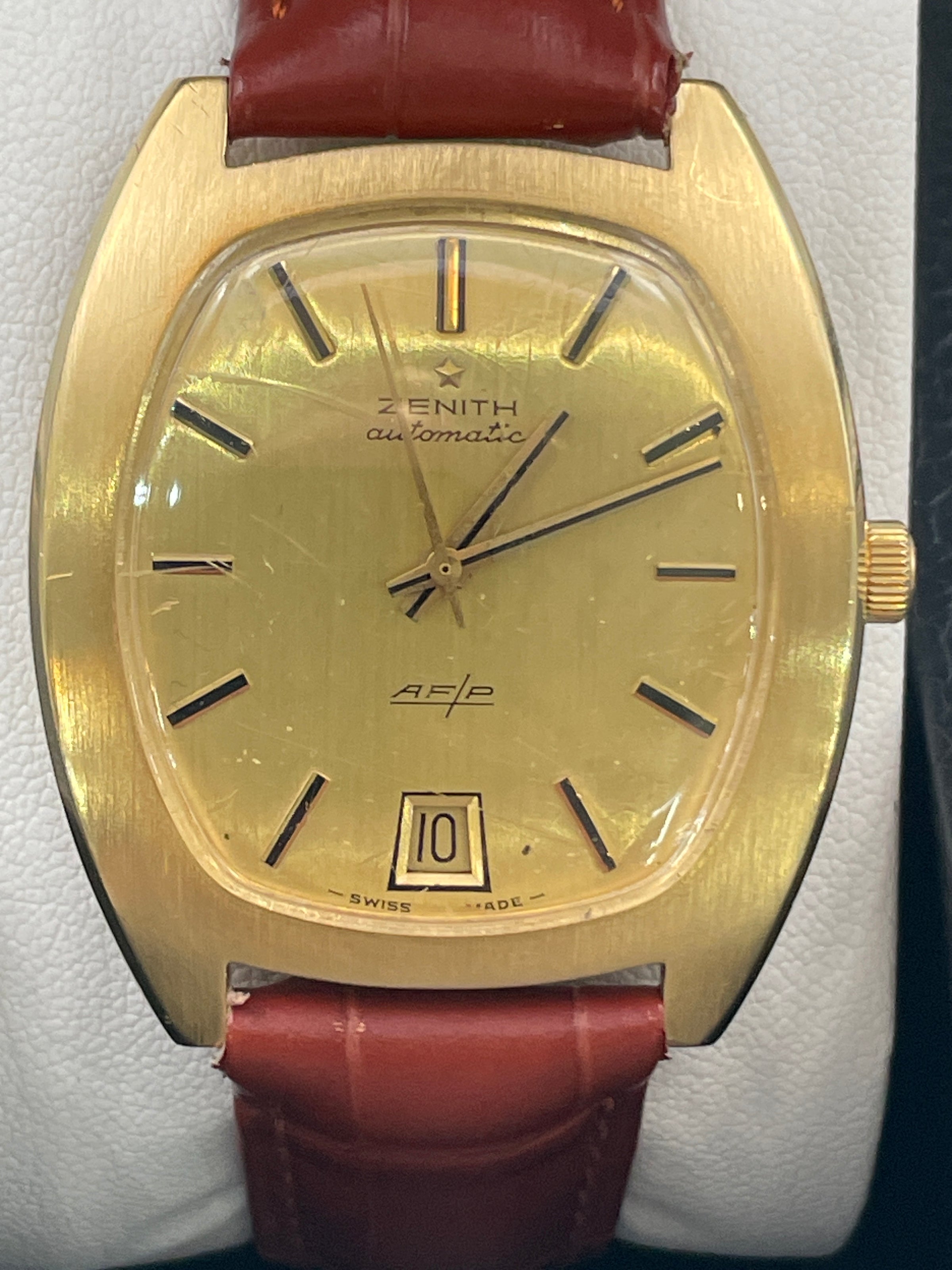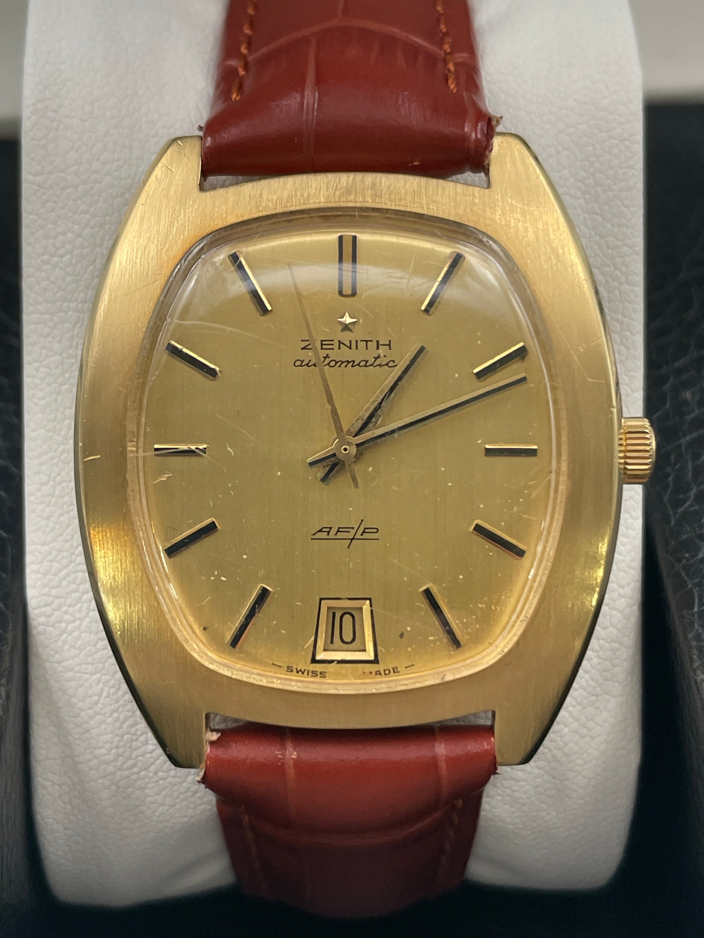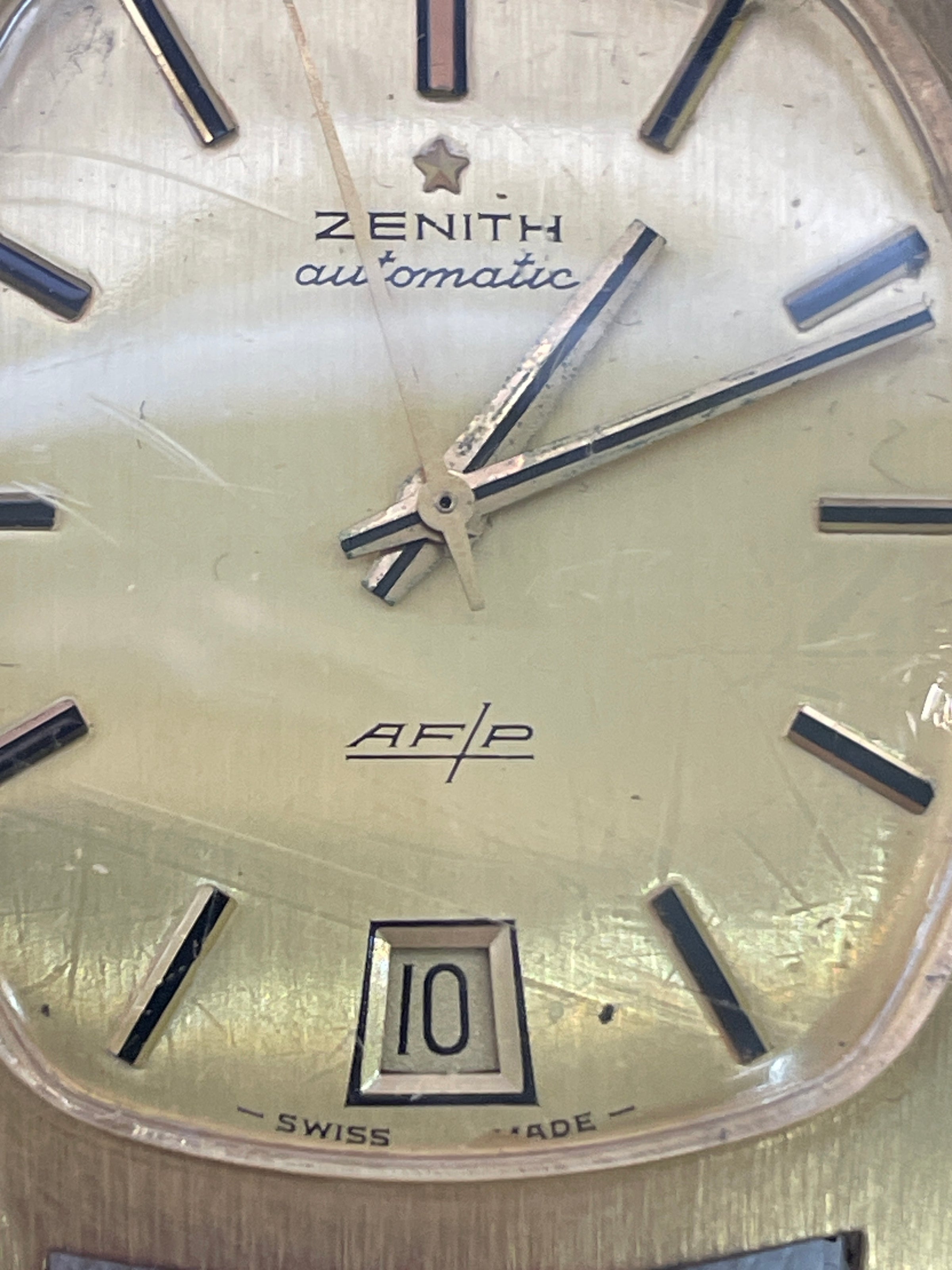 An AF/P-marked Zenith signals a vintage, high-frequency, high-precision automatic — often rarer and more desirable than standard vintage Zenith automatics.