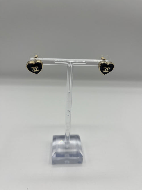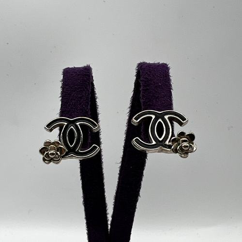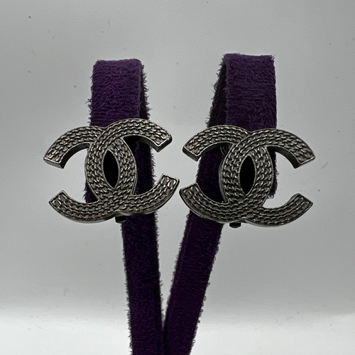 Chanel CC Clip On Dark Grey Metal Tweed Earrings
