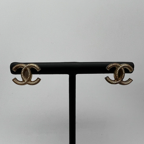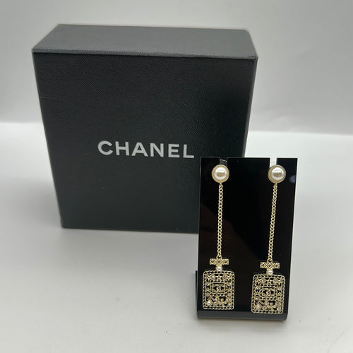 Chanel CC Gold -Tone Earrings Drop With Pearl