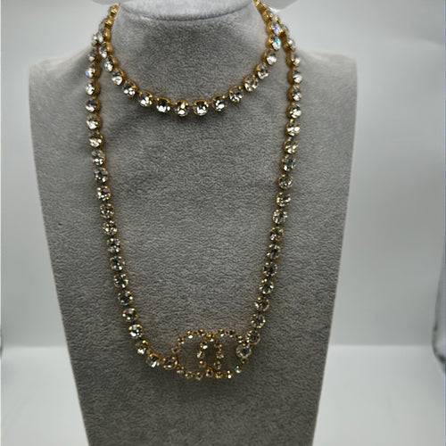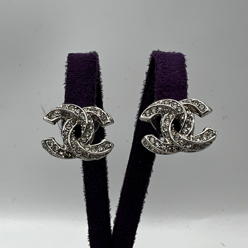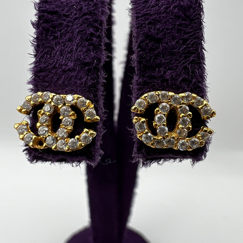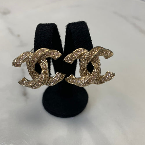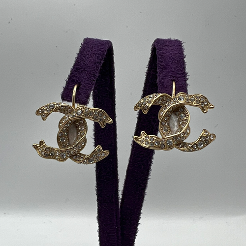 Chanel CC Logo Crystal & Pearl Gold Plated Earrings