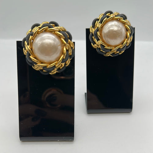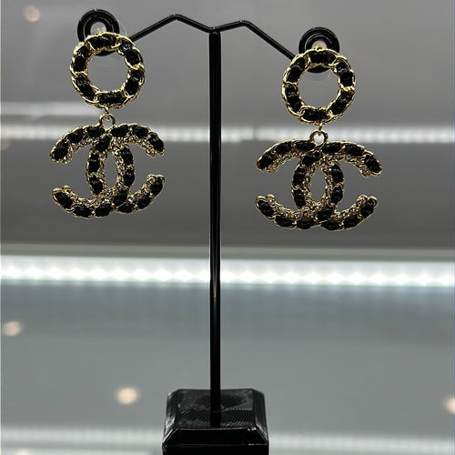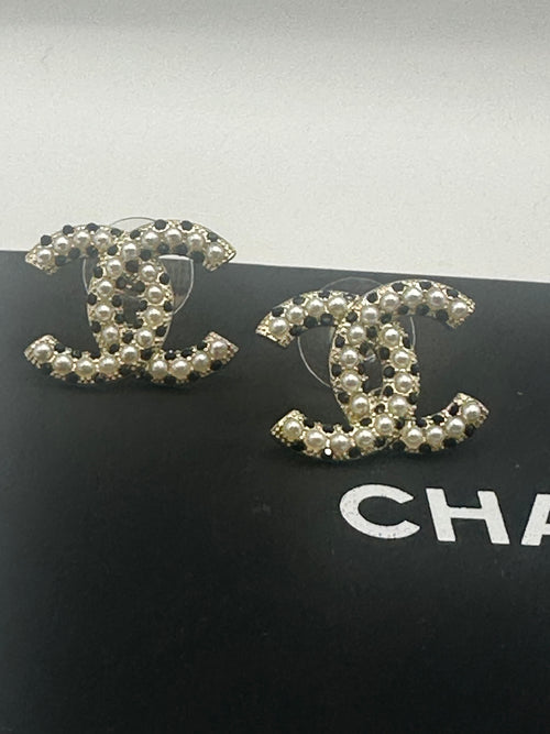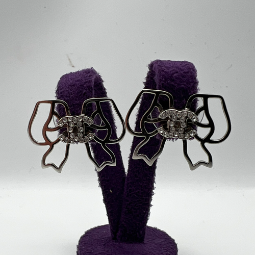 Chanel Double CC Ribbon Crystal Stud Earrings