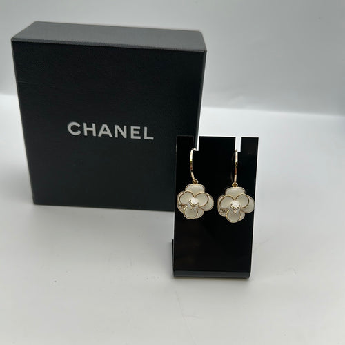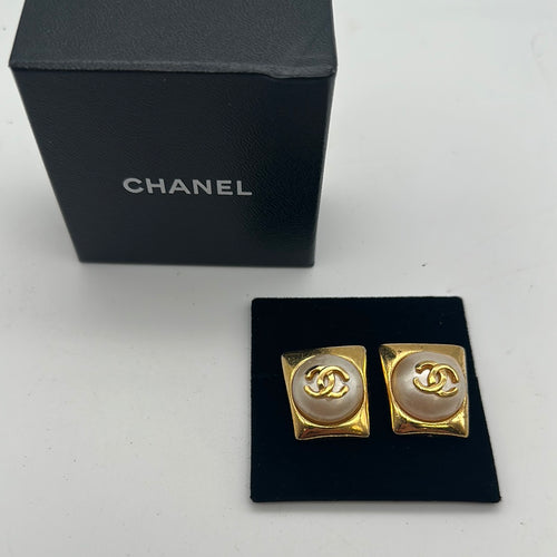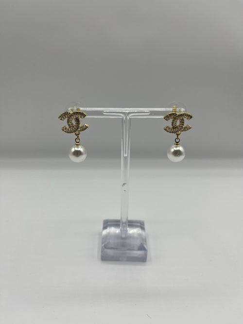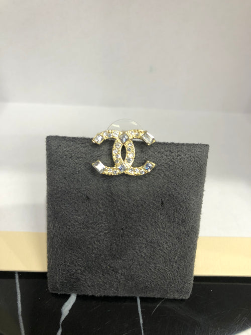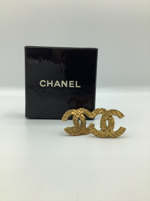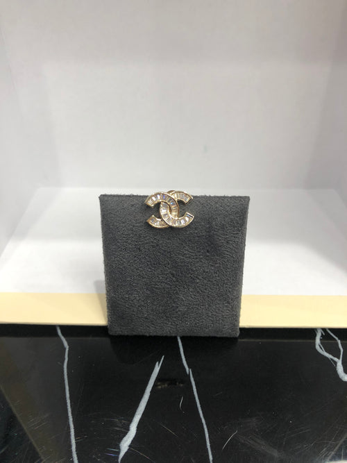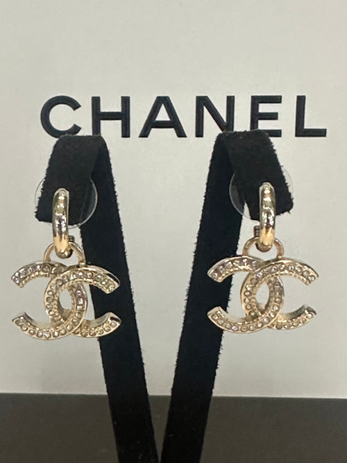Vintage CHANEL Classic CC Logo gold Earrings with Crystals