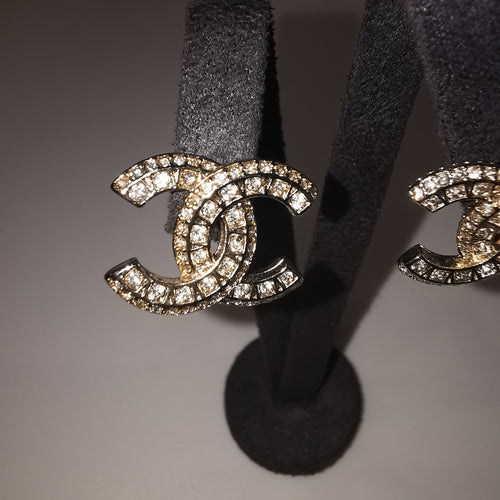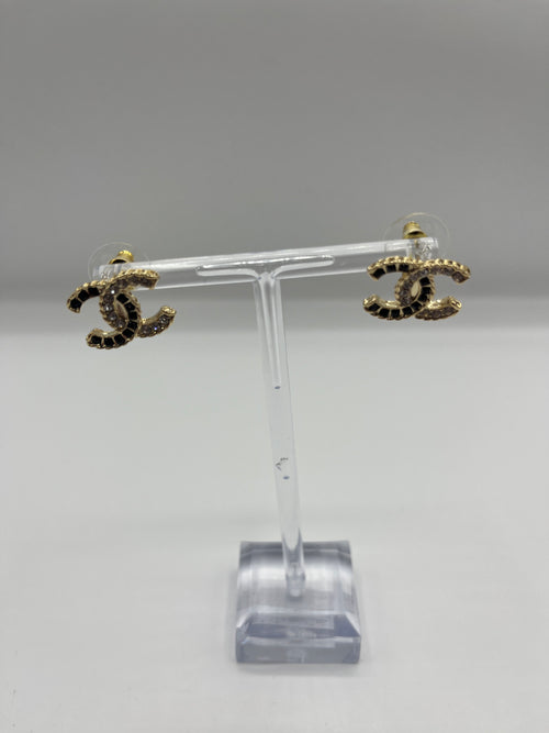 Re-Worked Chanel Black CZ Earrings CC Logo