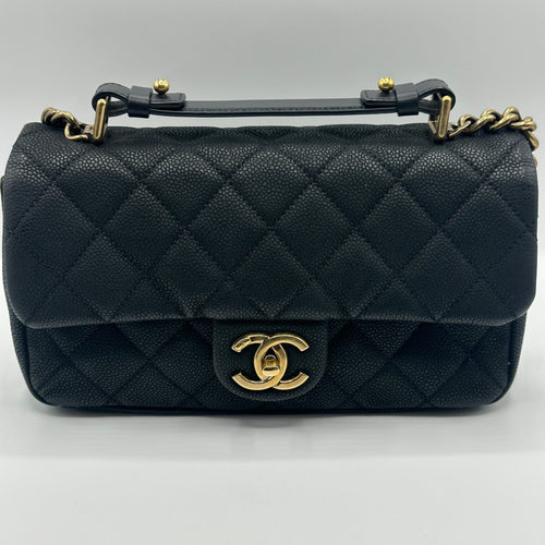 Chanel Globe -Trotter Flap Bag In Black Quilted Caviar