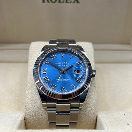 Rolex Stainless Steel Datejust 41mm Blue Roman Numeral Dial 2013 Box and Papers