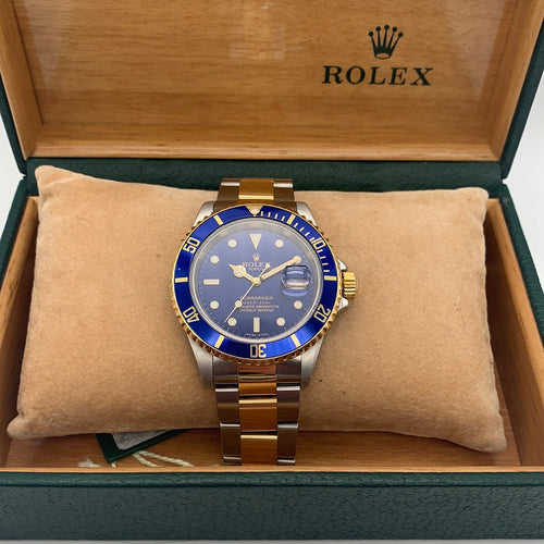 Rolex Steel and Gold Submariner Blue Dial and Bezel 1998 Model No.16613 Box and Papers