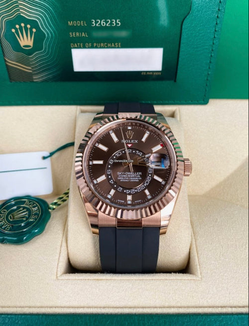 Rolex Sky-Dweller Solid Everose Gold Chocolate Dial Unworn Dec 2022
