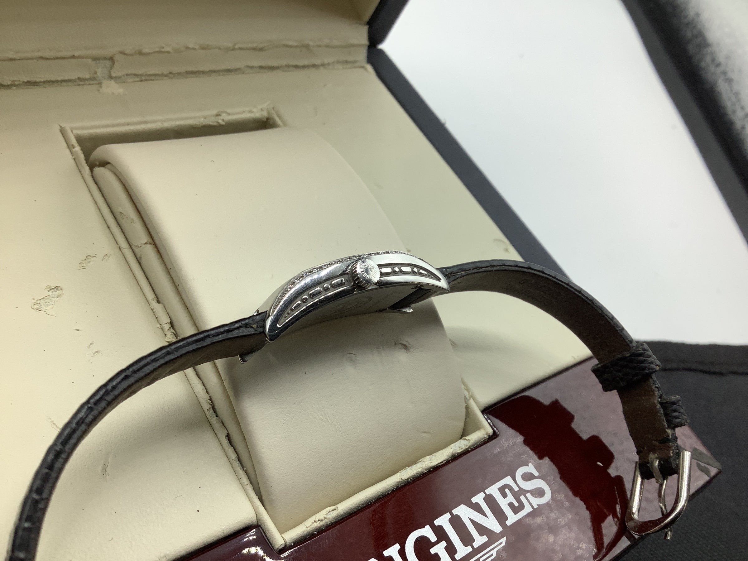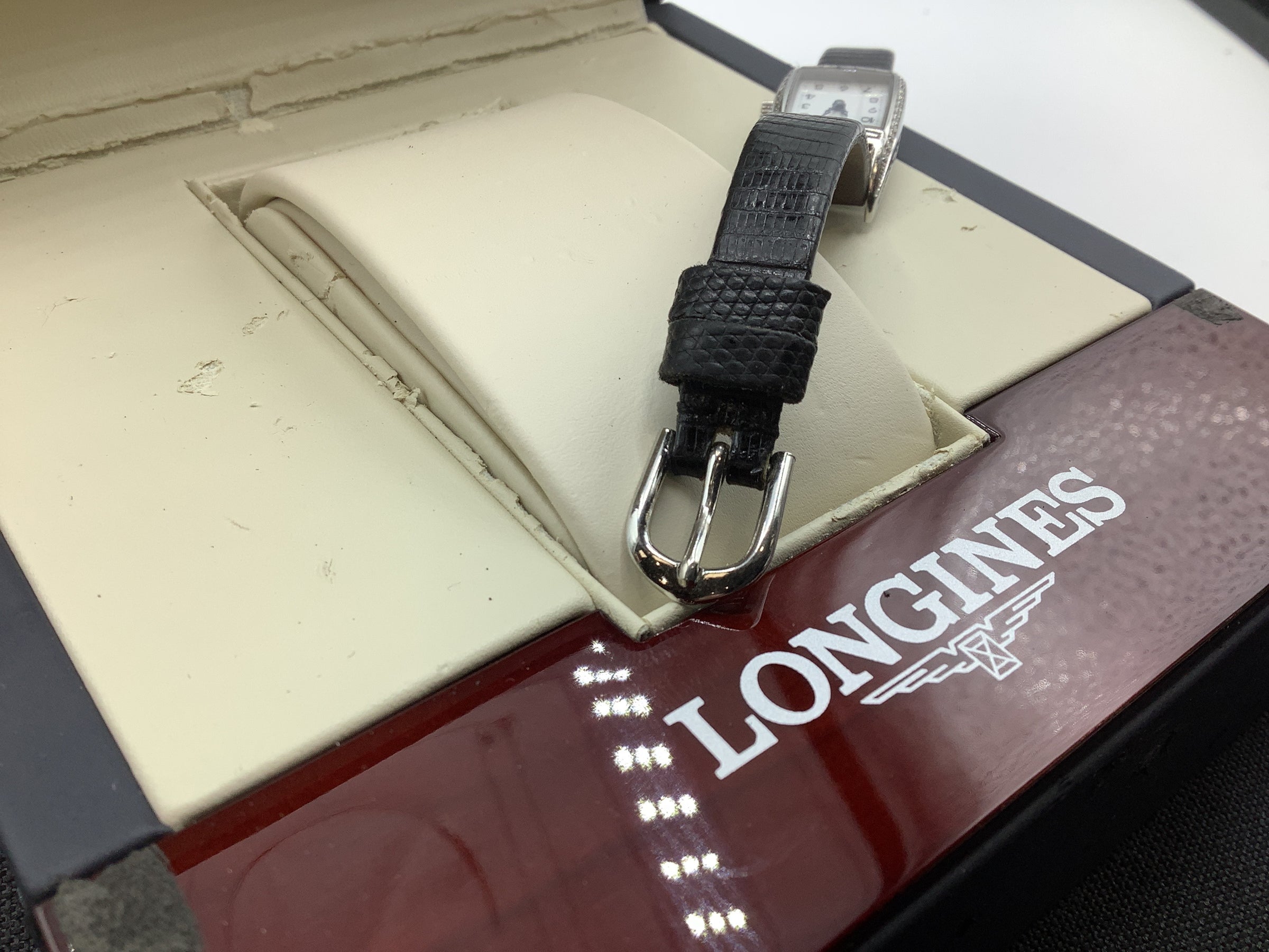 The Longines BelleArti L2.195.0 Diamond-Set Ladies Watch is a refined and feminine timepiece that showcases elegant Swiss design. Crafted from polished stainless steel, the softly contoured case is enhanced with a diamond-set bezel, adding a subtle yet luxurious brilliance. The dial is designed with delicate detailing, offering excellent legibility while maintaining a graceful aesthetic. Powered by a Swiss quartz movement, this watch provides dependable precision and effortless daily wear. Finished with a leather strap and protected by a scratch-resistant sapphire crystal, the BelleArti is a timeless expression of understated luxury.