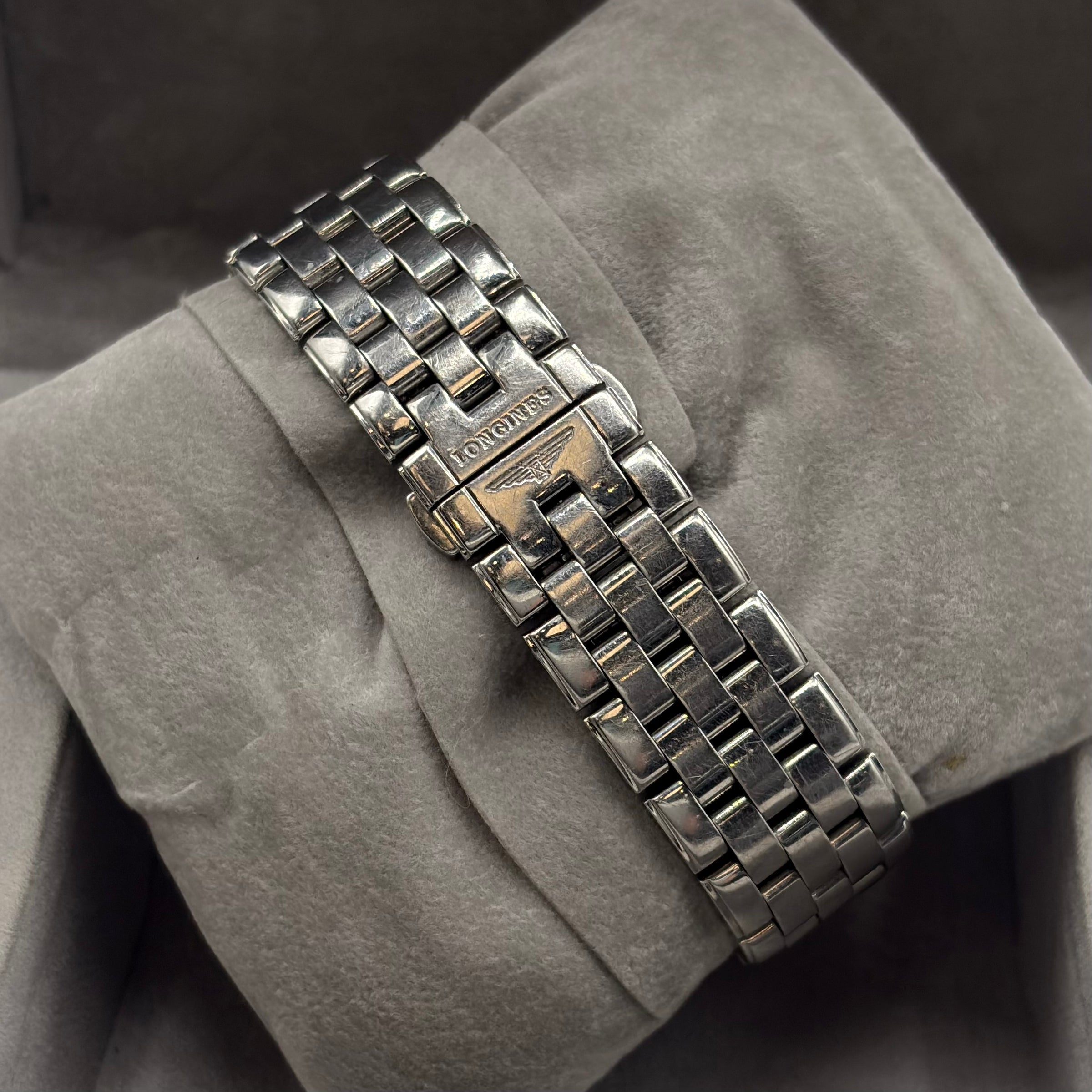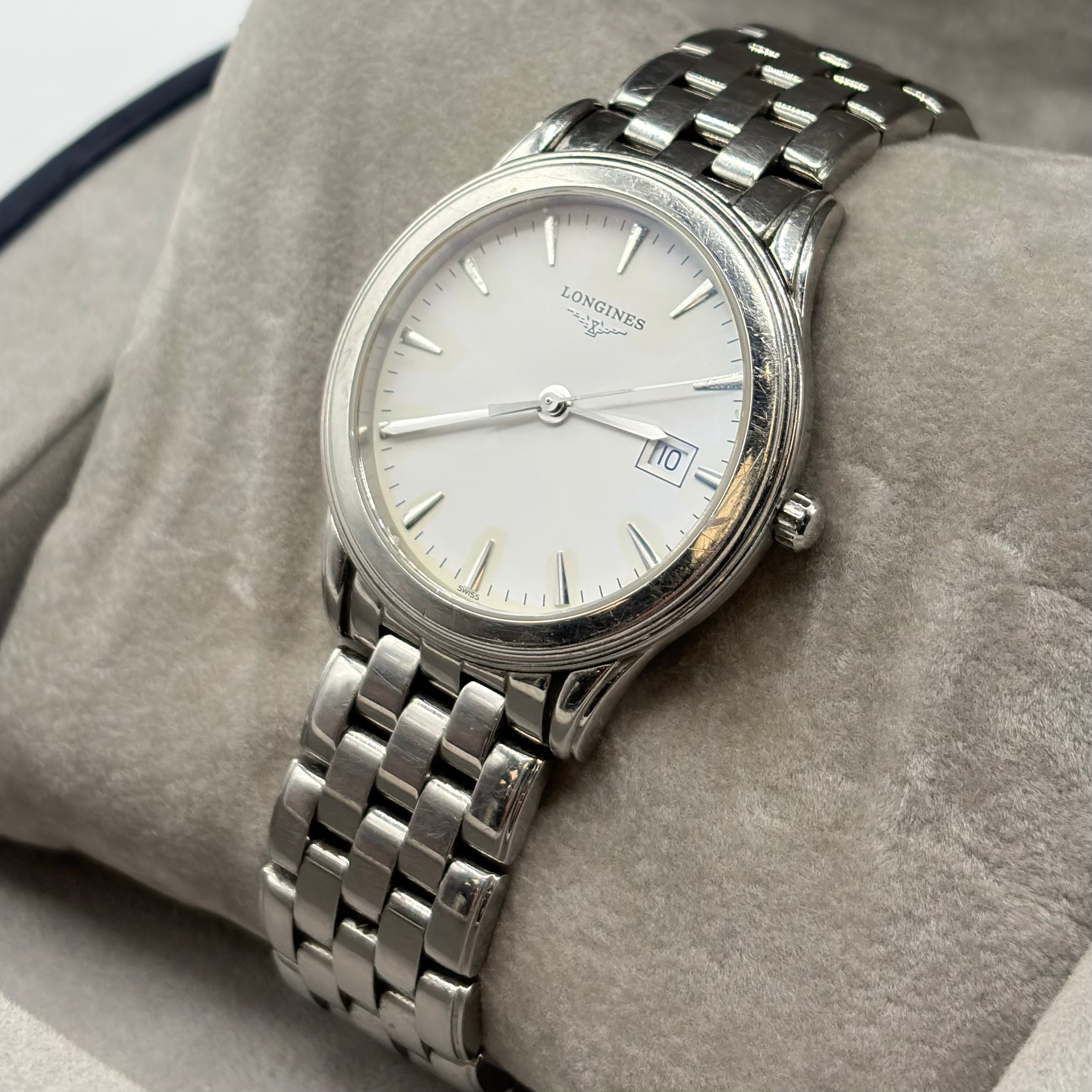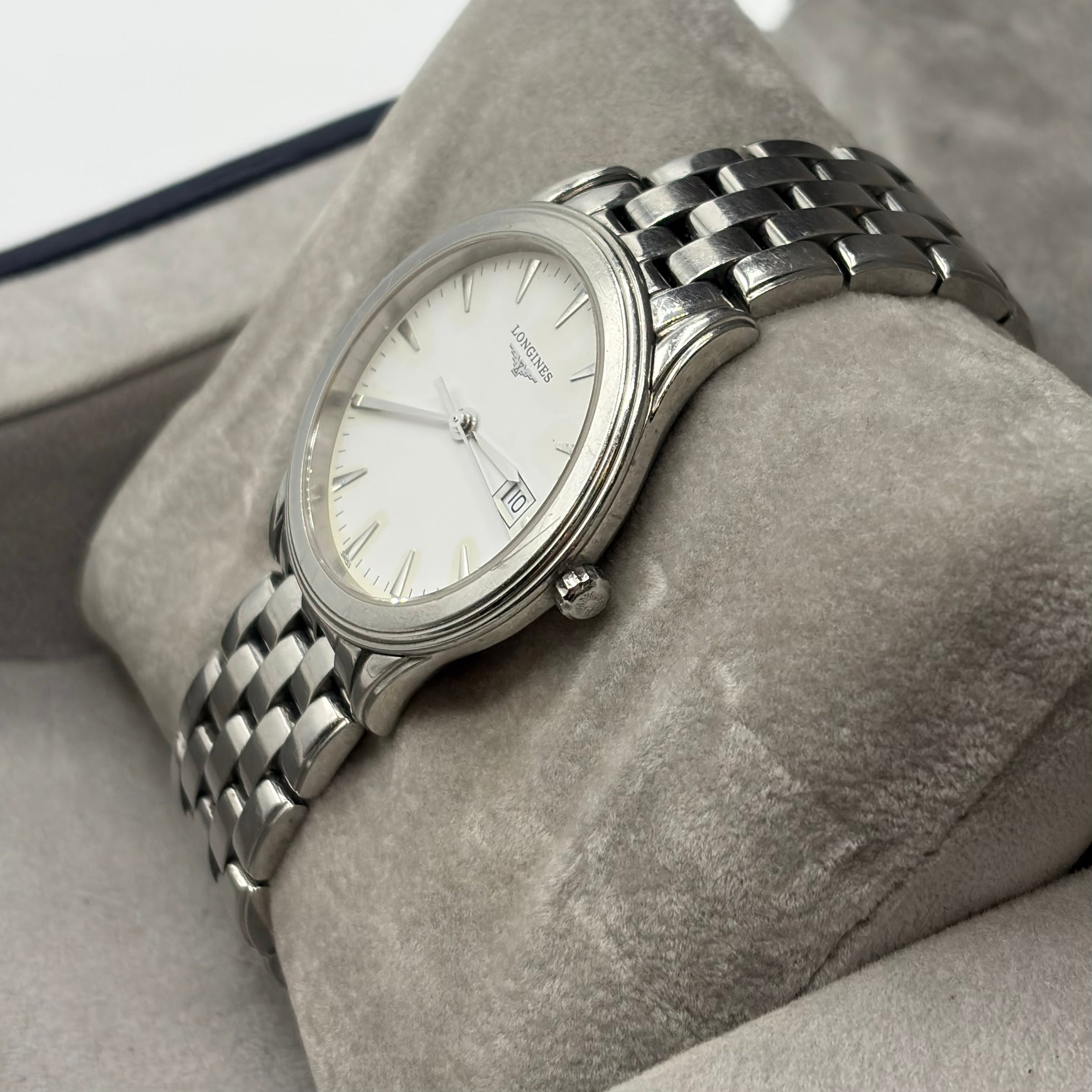 The Longines Flagship L4.716.4 is a classic and understated timepiece, reflecting timeless Swiss elegance. Crafted from polished stainless steel, the slim 35.5mm case offers a refined profile ideal for formal or everyday wear. The dial is clean and well-balanced, featuring applied hour markers and elegant hands designed for clear legibility. Powered by a Swiss quartz movement, this gentleman’s watch delivers reliable performance. It is a versatile and enduring design suited to a discerning wearer.