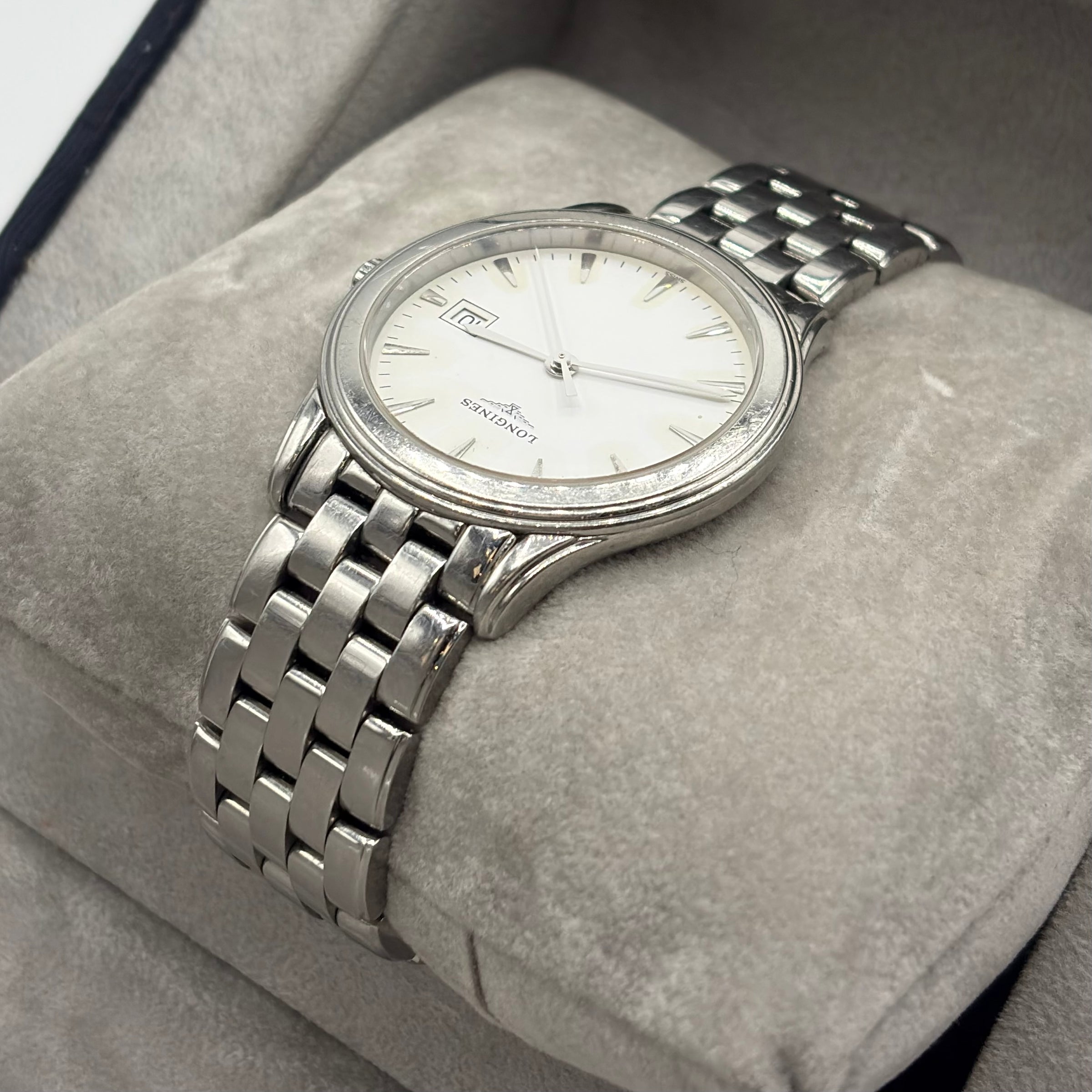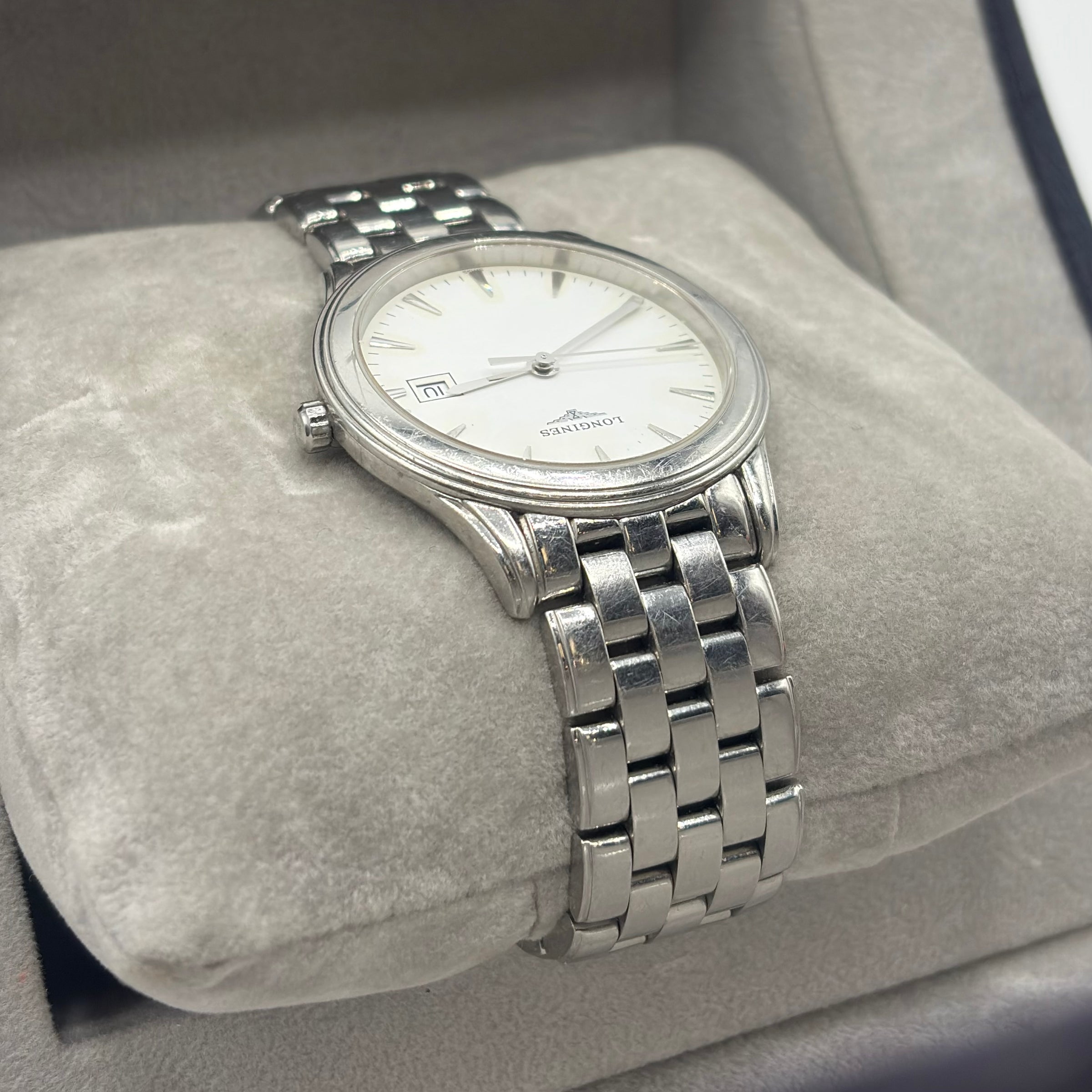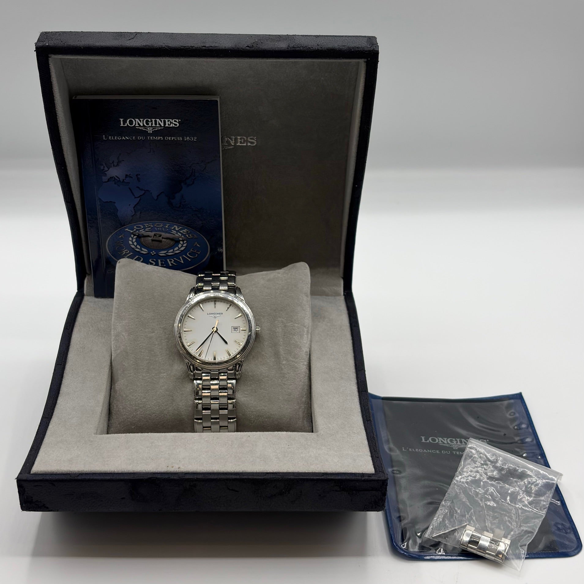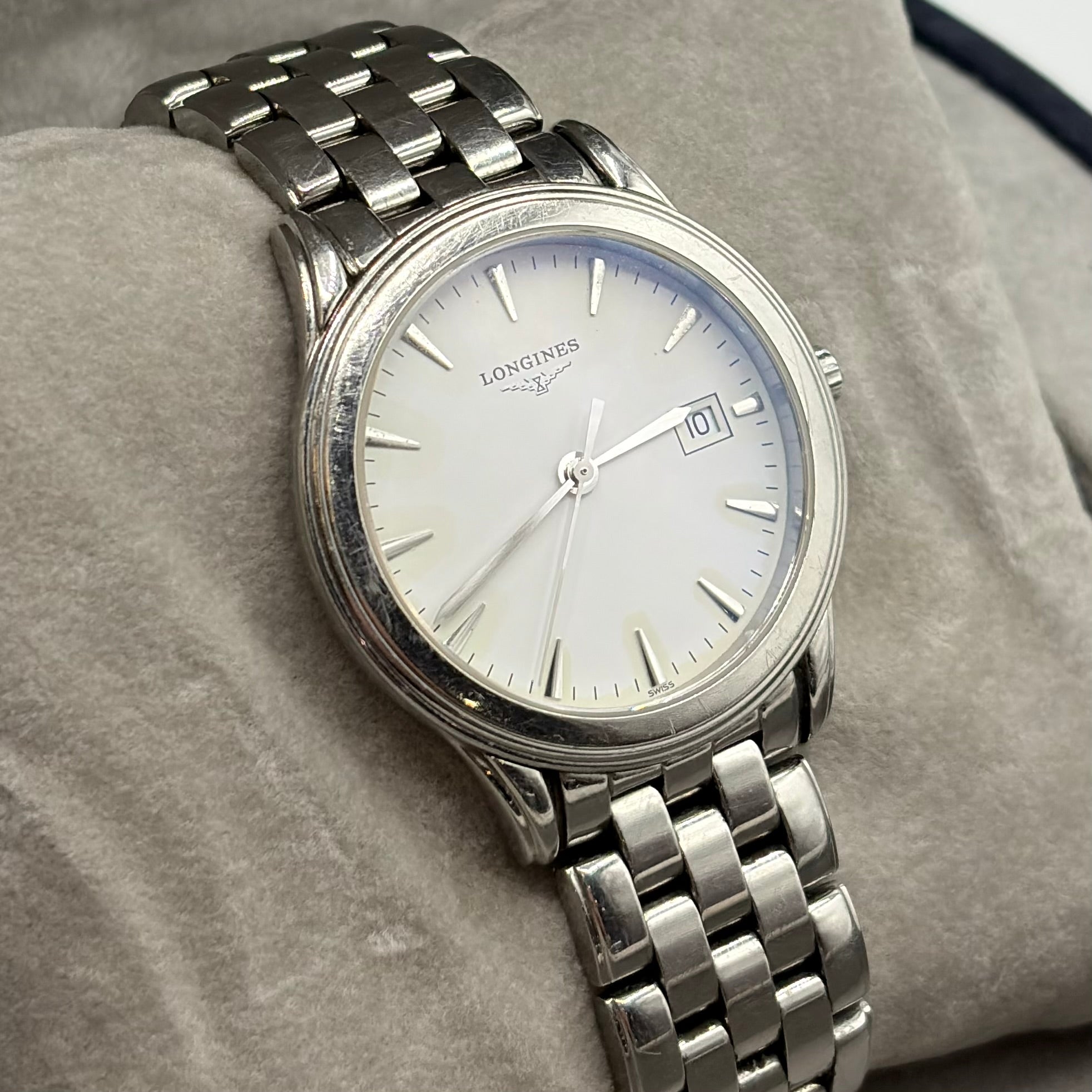 The Longines Flagship L4.716.4 is a classic and understated timepiece, reflecting timeless Swiss elegance. Crafted from polished stainless steel, the slim 35.5mm case offers a refined profile ideal for formal or everyday wear. The dial is clean and well-balanced, featuring applied hour markers and elegant hands designed for clear legibility. Powered by a Swiss quartz movement, this gentleman’s watch delivers reliable performance. It is a versatile and enduring design suited to a discerning wearer.